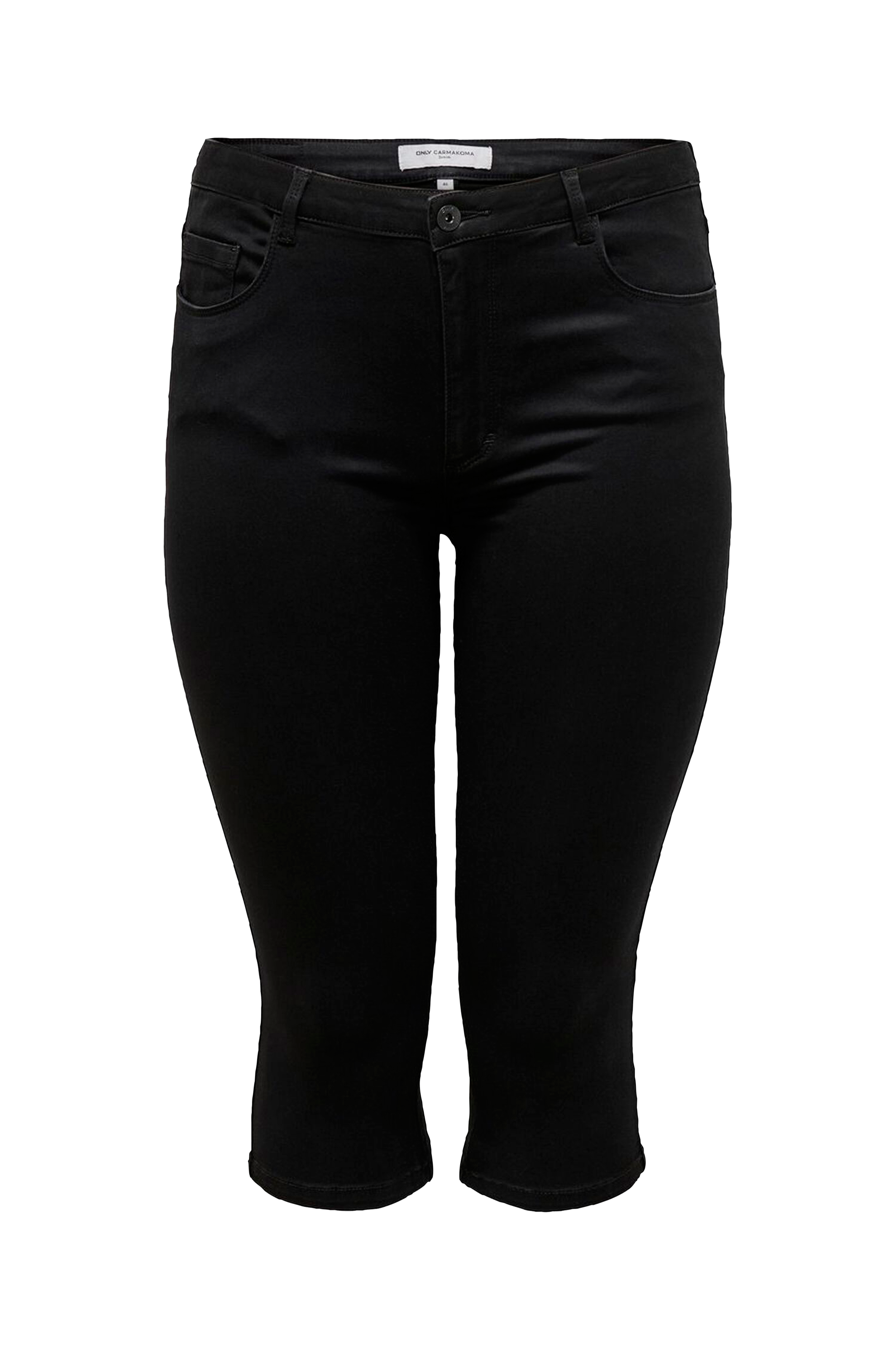 Bukser i smal model med smalle ben som slutter på læggen. Høj talje med stropper og lynlås i gylpen og tre lommer foran samt to påsyede baglommer. Benlængde ca. 49 cm i str. 44.