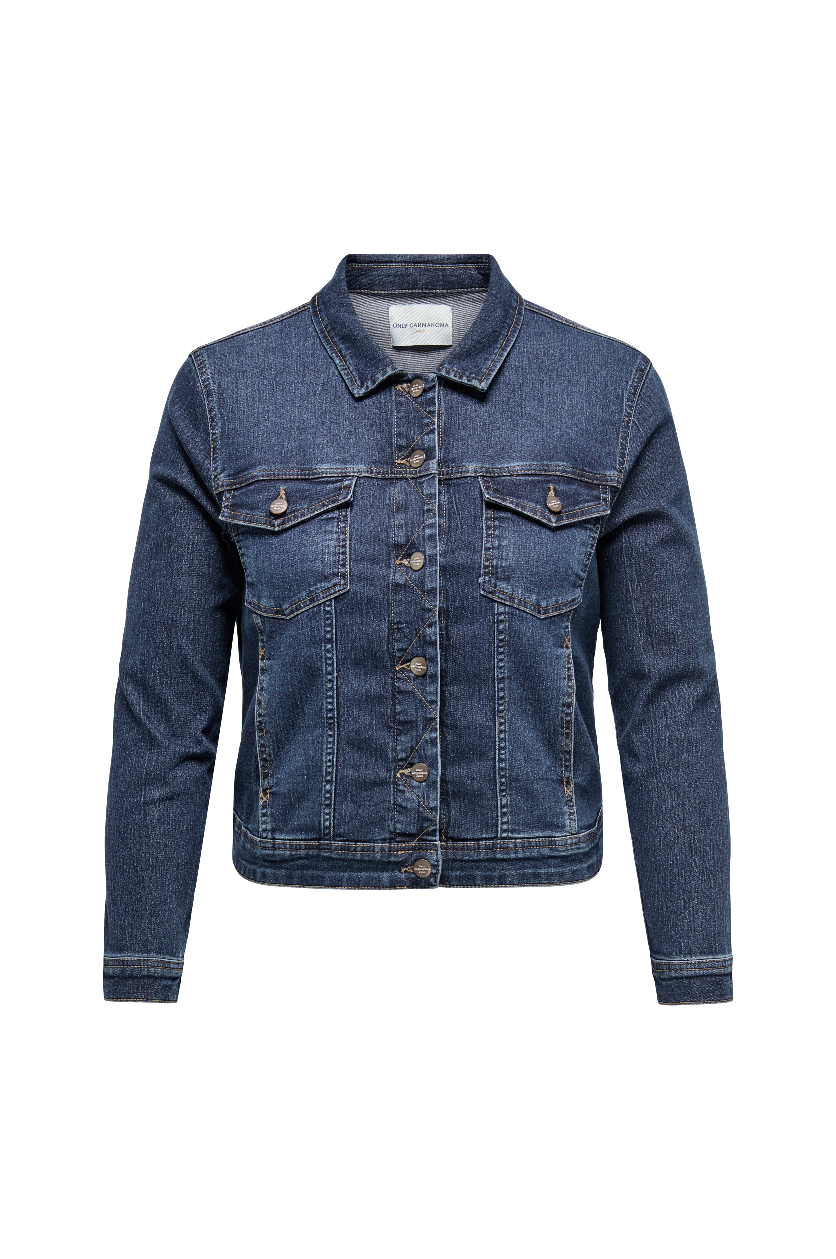 • Cowboyjakke med skjortekrave • Figursyet model • Lange ærmer med knap ved manchetterne • Knaplukning foran • To brystlommer med låg og knap • Plusstørrelser • Længde: 52 cm i størrelse 42