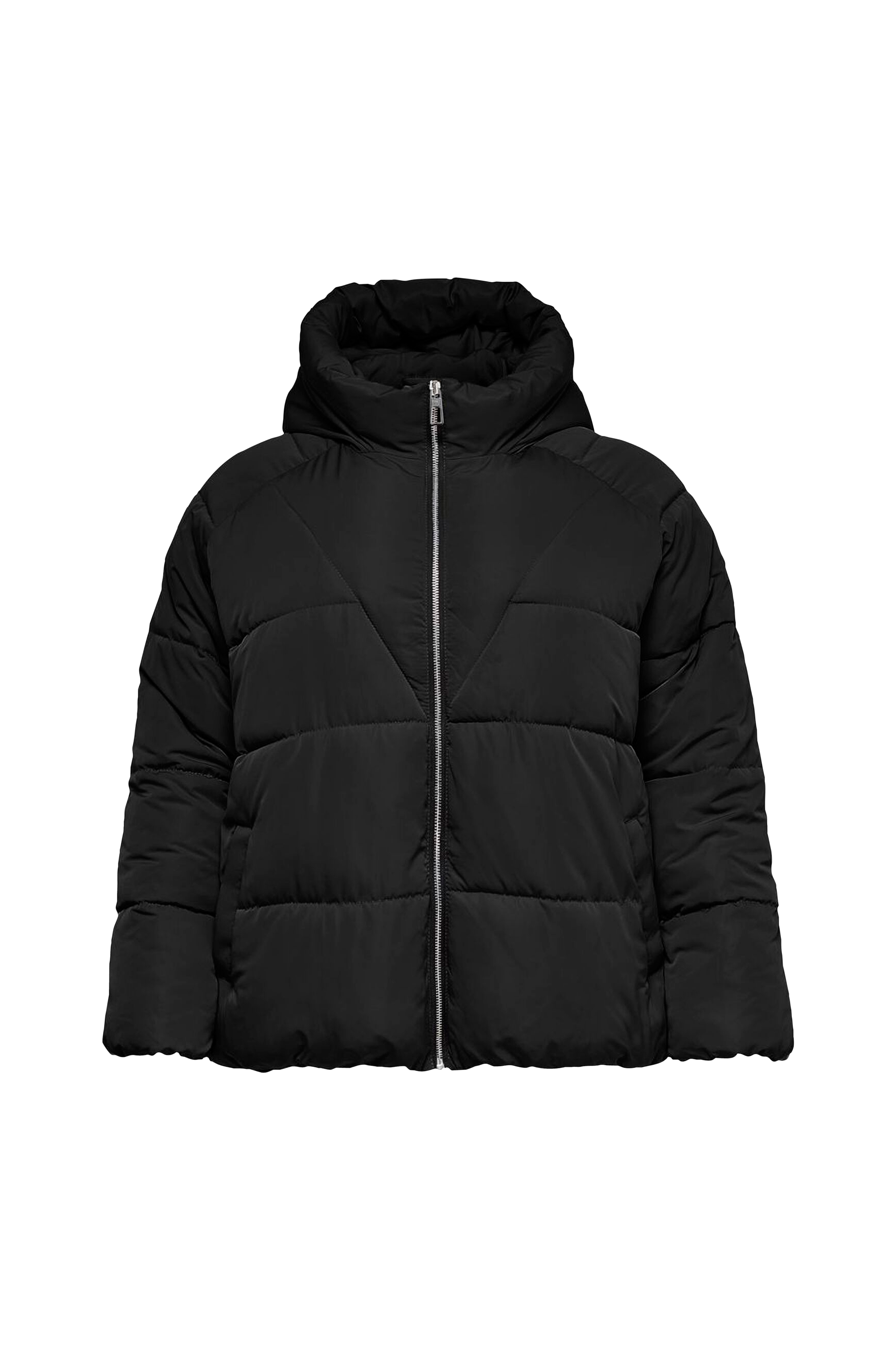 Quiltet jakke som er varmt vatteret med Dupont Sorona®, et genindvundet letvægtsmateriale. Fast hætte og lynlås. To lommer med trykknap og for i børstet jersey. Elastik i ærmekanten og kanten forneden. Længde ca. 80 cm i str. 54.