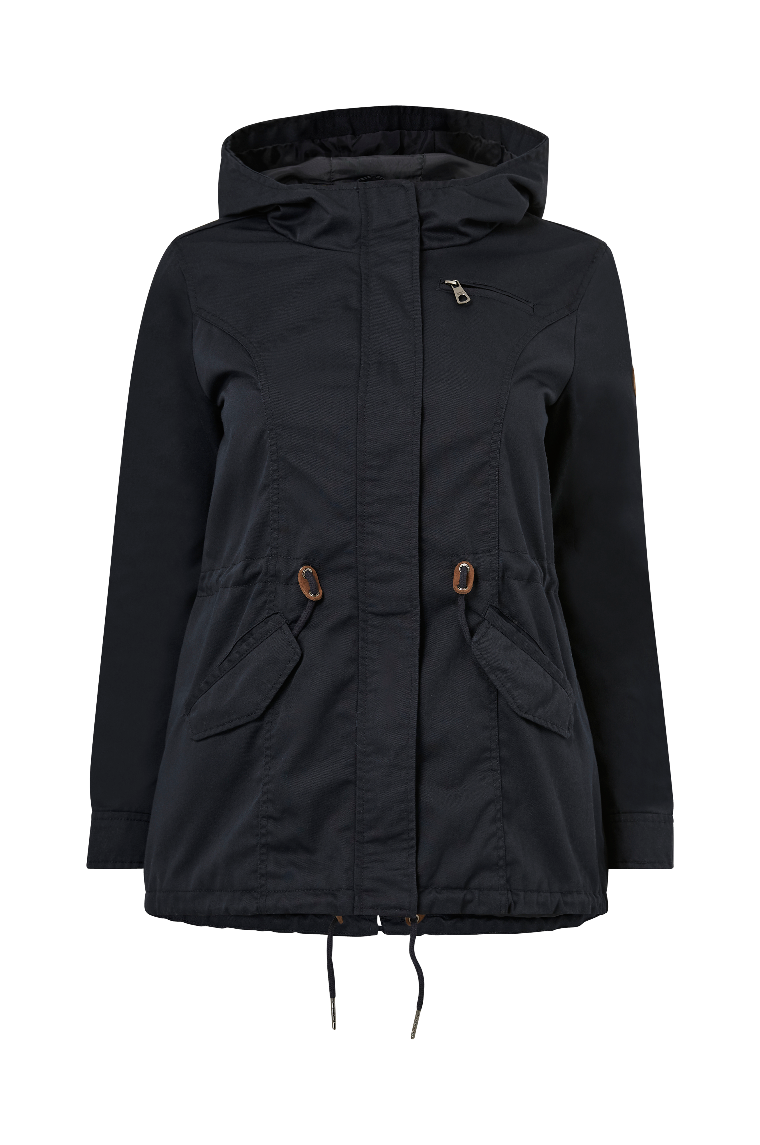 • Lynlås foran• Vindflap med trykknapper• Træksnørre ved taljen og ved nederste kant• To forlommer• Hætte• Store størrelser• Længde: 76 cm i størrelse S