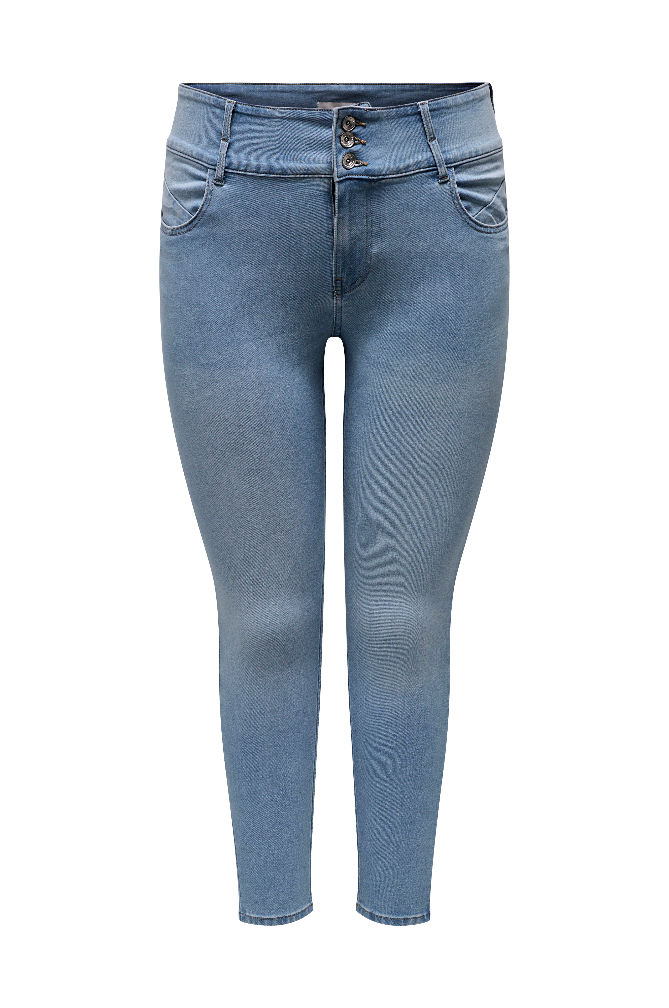 • Høj talje• Smal pasform• Ankellange ben• Tre knapper ved taljen• Gylp med lynlås• Strækkvalitet• Store størrelser