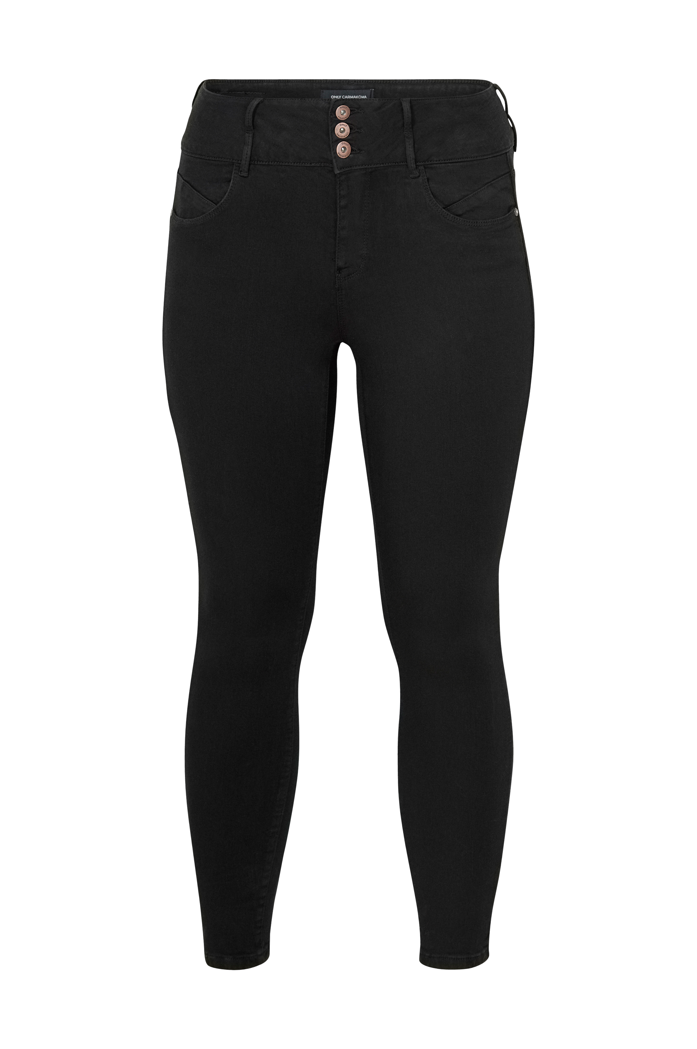 Jeans carAnna Jeans fra Only Carmakoma. Smal model i smidig stretchkvalitet med smalle ben og smalle benkanter. Tre forlommer og lynlås i gylpen samt to påsyede baglommer. Benlængde ca. 79 cm i str. 44. Fodvidde ca. 28 cm.