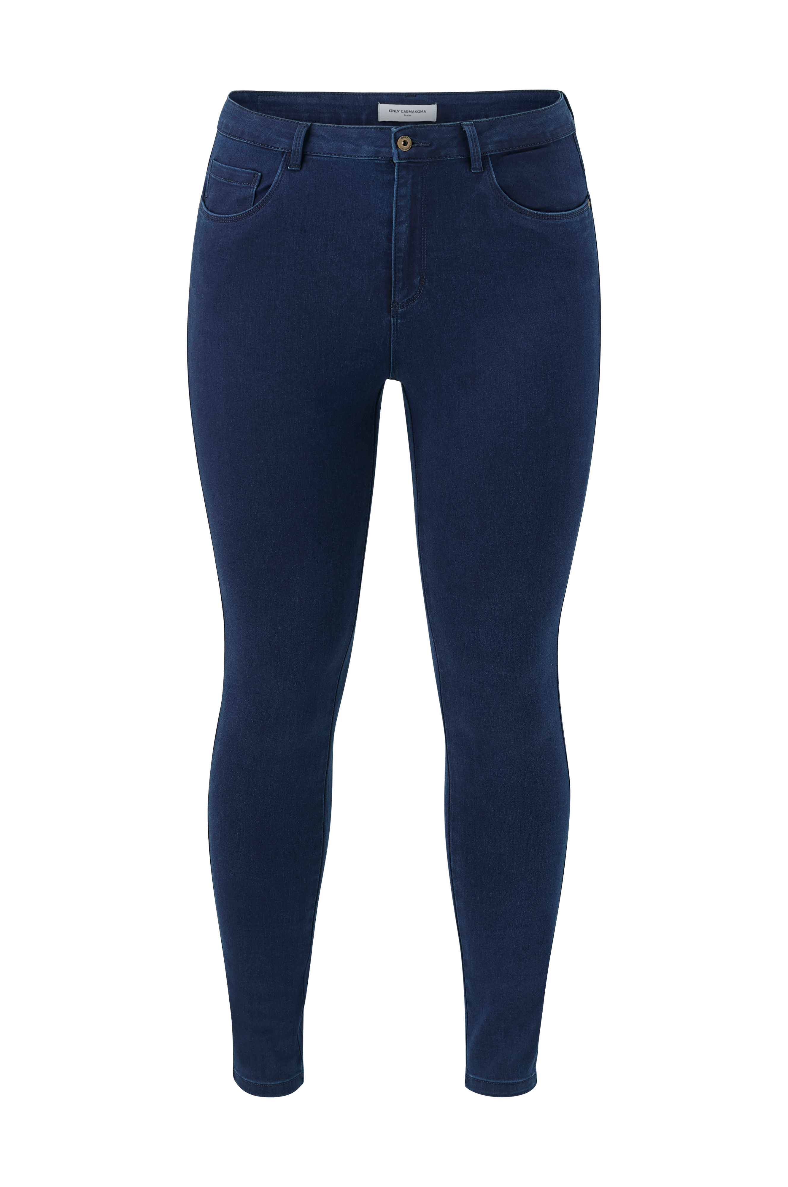 Jeans carAugusta HW Skinny fra Only Carmakoma. Skøn model med smal pasform i smidig stretchdenim. Tre jeanslommer foran og to påsyede baglommer samt lynlås i gylpen.