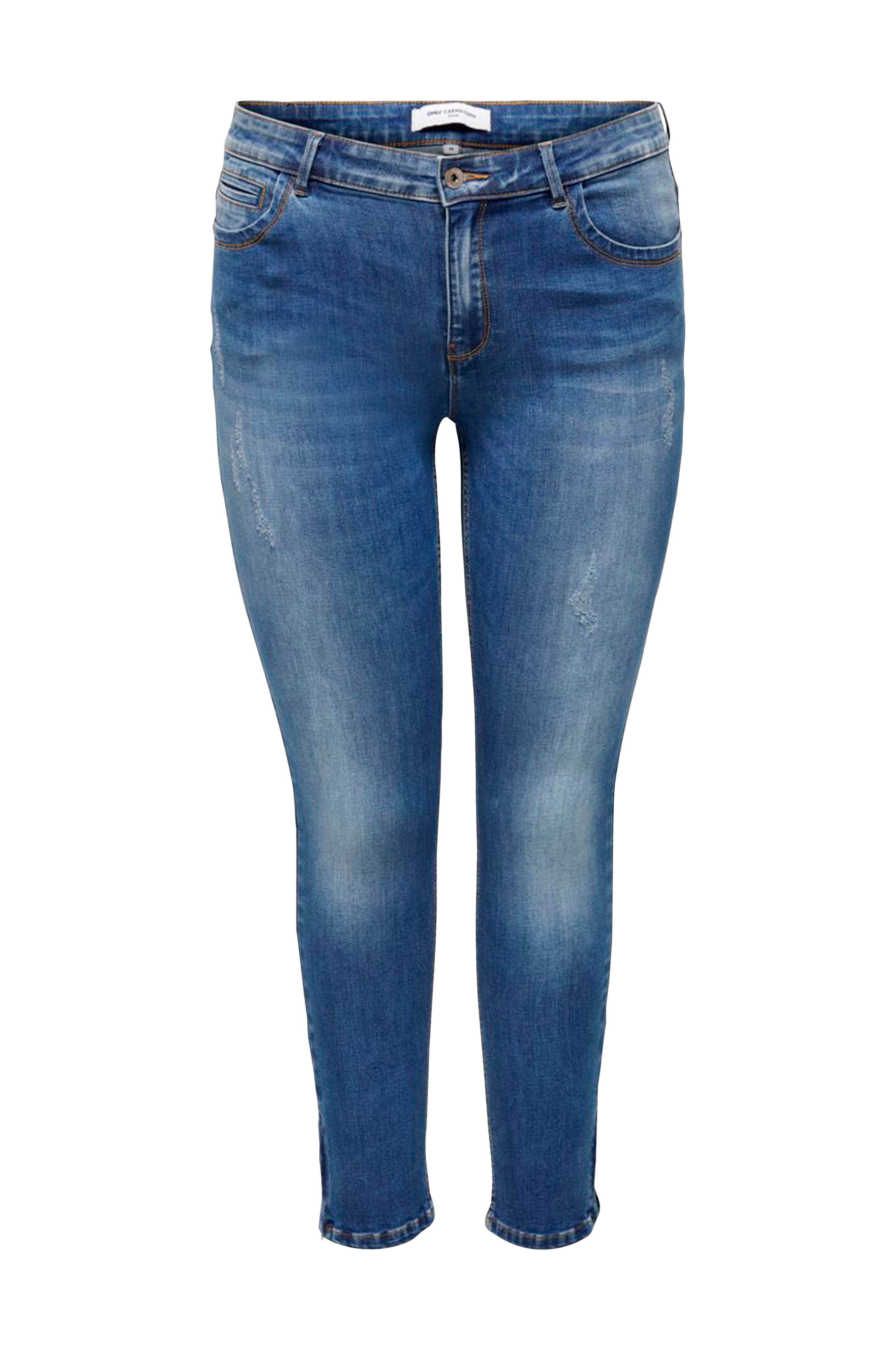 Model med normal pasform og smal benkant med kort lynlås på ydersiden. To lommer og en møntlomme foran samt lynlås i gylpen og to påsyede baglommer. Benlængde ca. 74 cm i str. 44.