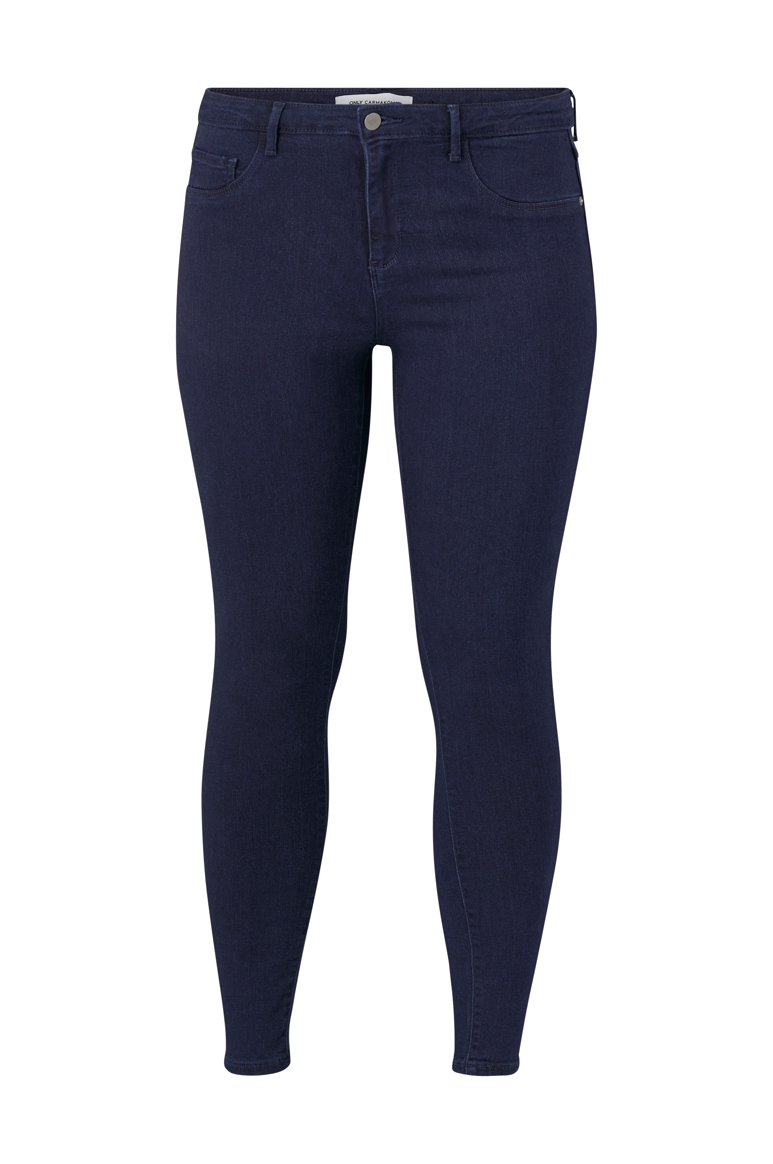 Jeans carThunder Push Up Reg Skinny fra Only Carmakoma. Smal model med normalhøj talje og smal benkant. Skøn stretchkvalitet med pyntestukne snydelommer foran og to påsyede baglommer. Indvendig benlængde ca. 77 cm i str. 44.