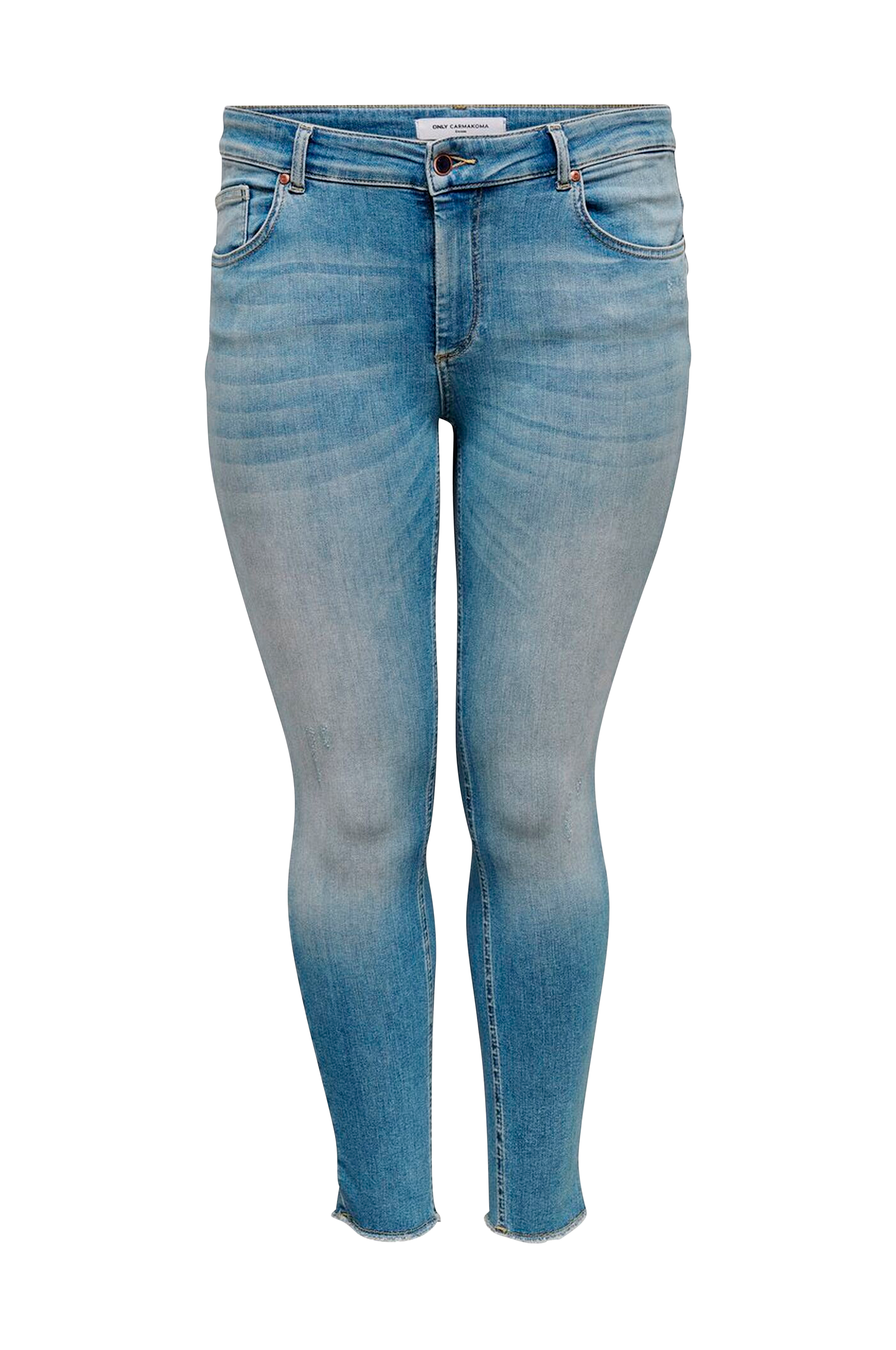 Jeans carWilly REG ANK fra Only Carmakoma. Model med normal pasform og smalle ben, som slutter ved anklen, med frynsede, usømmede benkanter. Lynlås i gylpen og tre lommer foran samt to påsyede baglommer. Stretchdenim med slidte effekter - af fin bomuld.