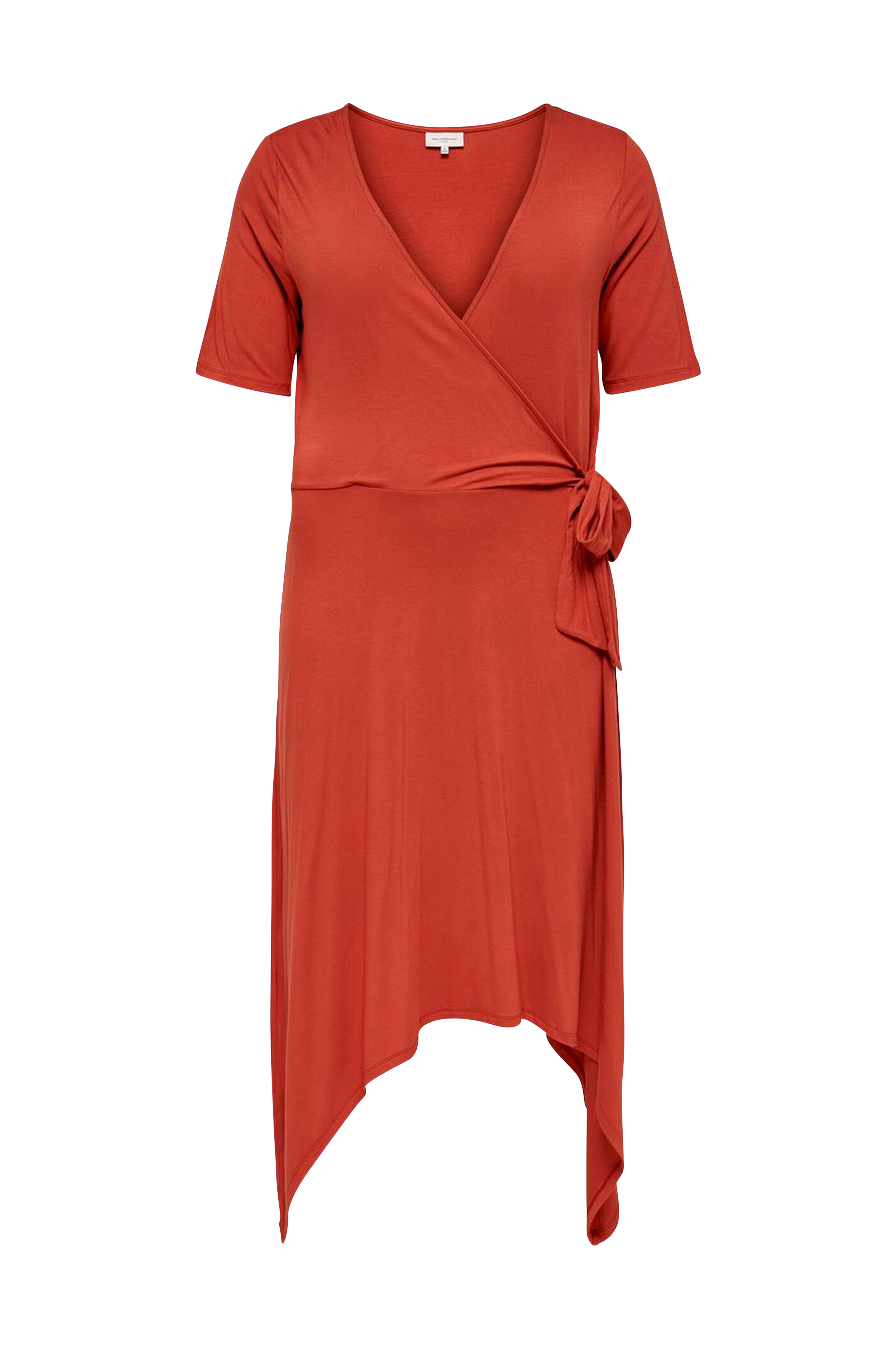 Kjole carDry Life 2/4 Wrap Blk Dress fra Only Carmakoma i blød jersey. V-udskæring i slå-om og bindebånd i siden. Asymmetrisk kant forneden hvor siderne er længere. Længde midt foran ca. 124 cm i str. XL.
