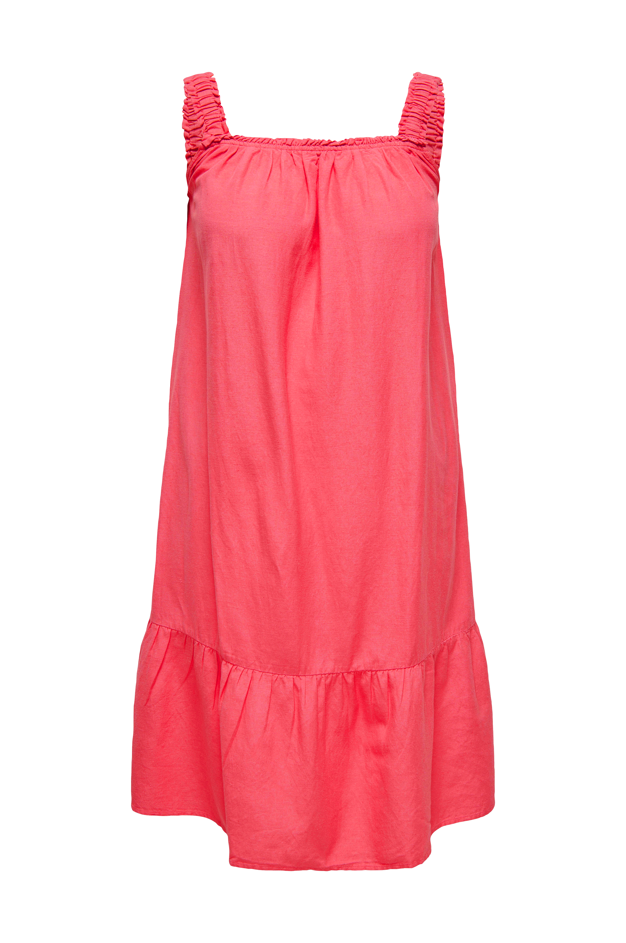 • Kjole i hørblanding• Elastiske, rynkede skulderstropper• Volant nederst• Store størrelser• Længde: 123 cm i størrelse 42