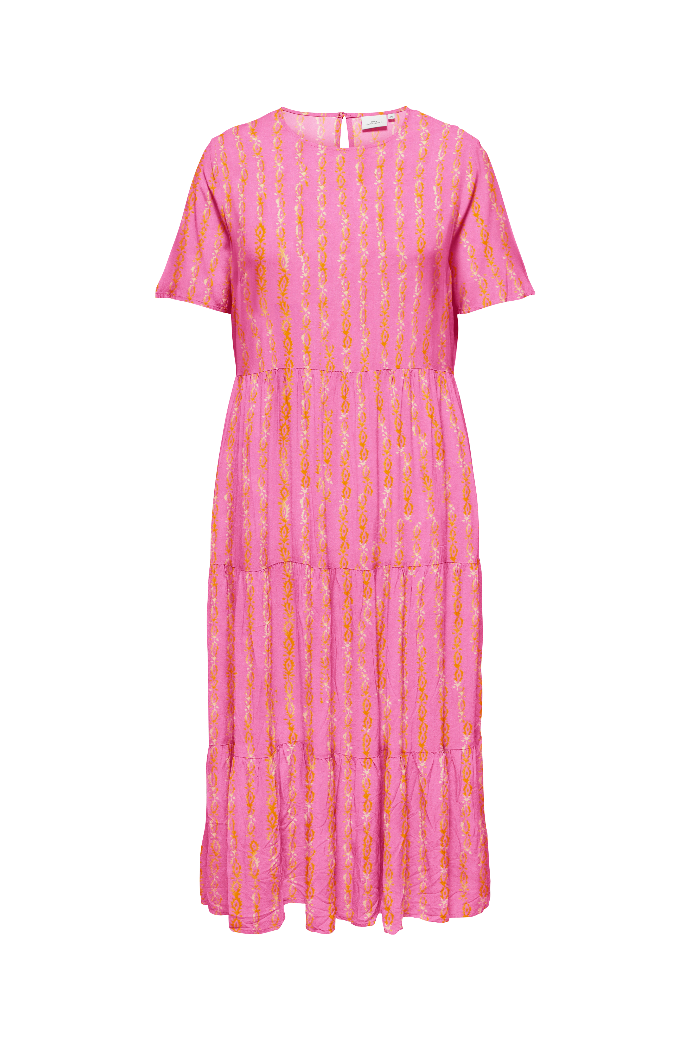 • Store størrelser• Lang model med svaj med rynket talje• Rund hals med knap i nakken• Kort ærme• Volanter nederst• Længde: 119 cm i størrelse 42
