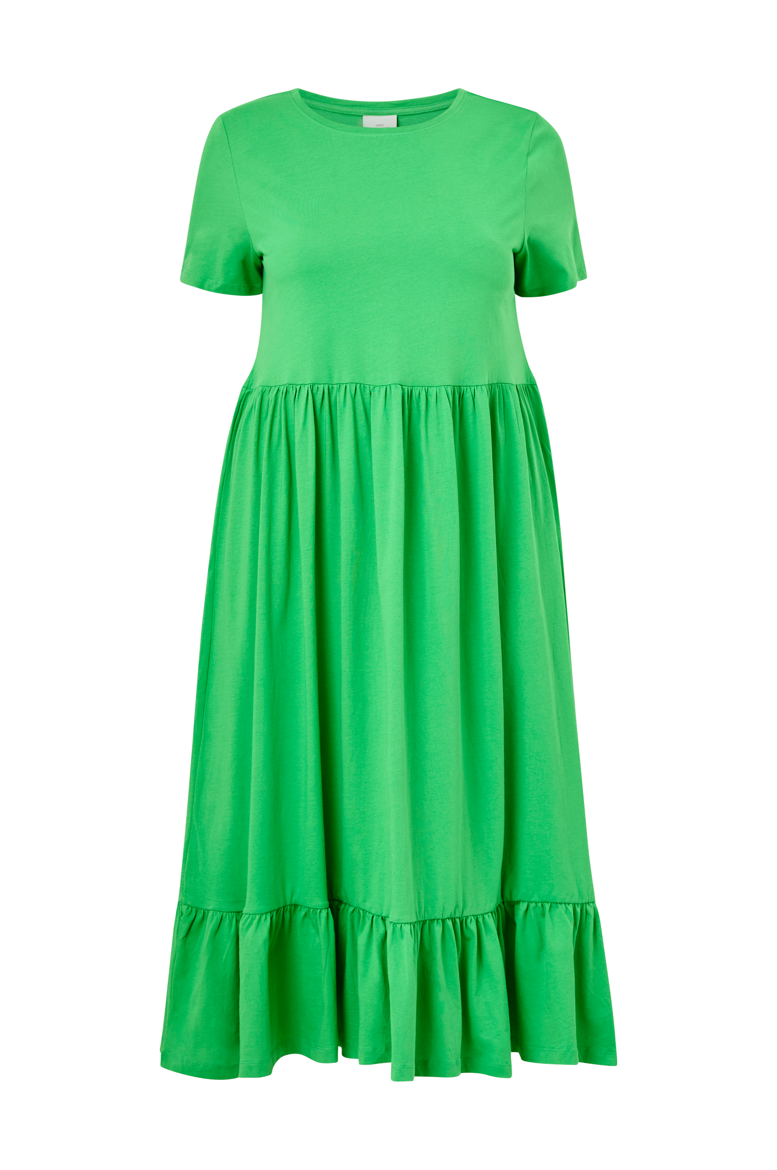 • Kjole i bomuld med rund hals• Kort ærme• Udskæring ved taljen med samling• Volant ved nederste kant• Store størrelser• Længde: 129 cm i størrelse 42/44