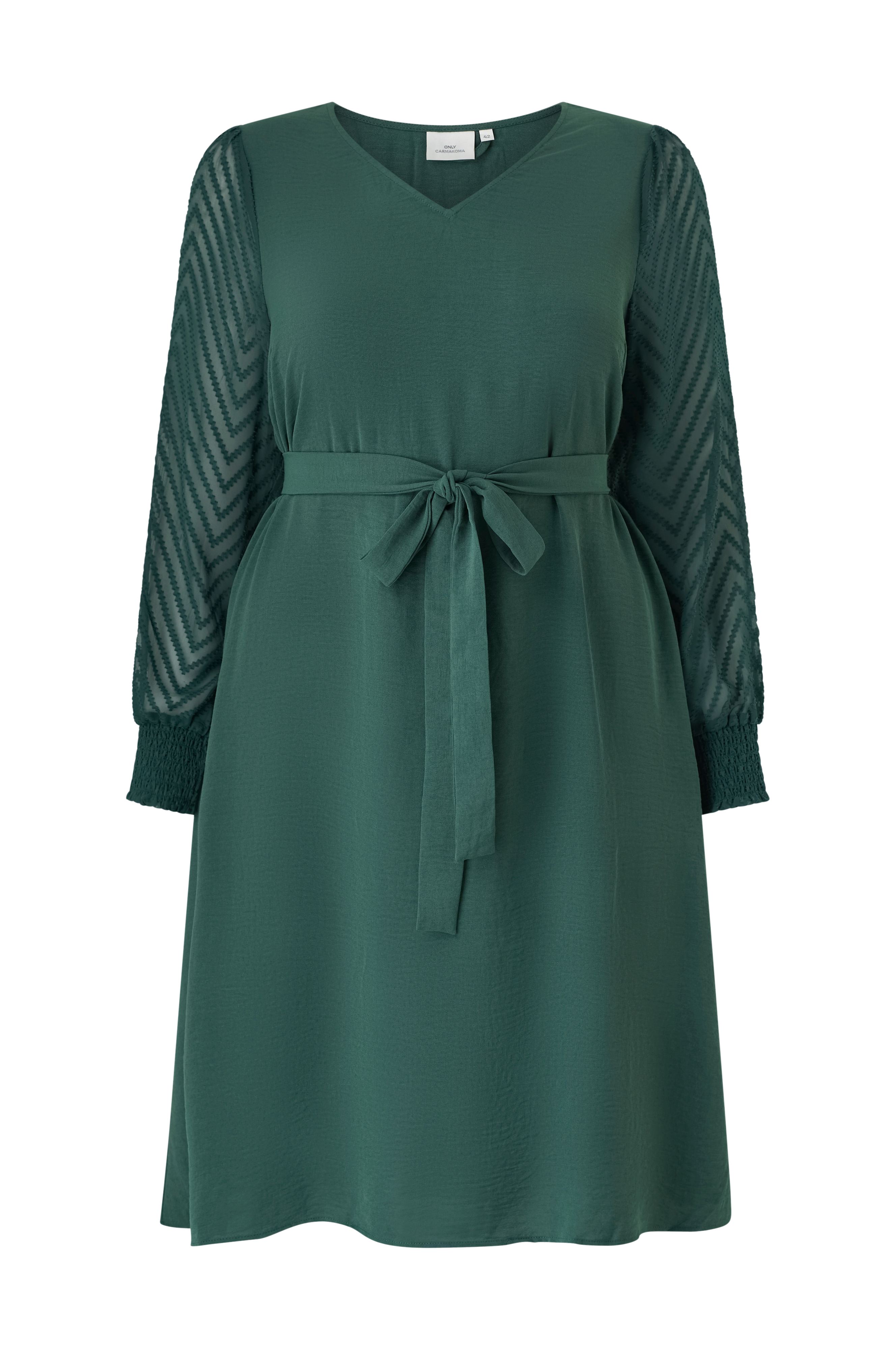 • Model med svaj med mønstervævede ærmer• Langt ærme med elastiksømme nederst• V-formet halsudskæring• Bindebånd ved taljen• Længde: 105 cm i størrelse 42• Plusstørrelser