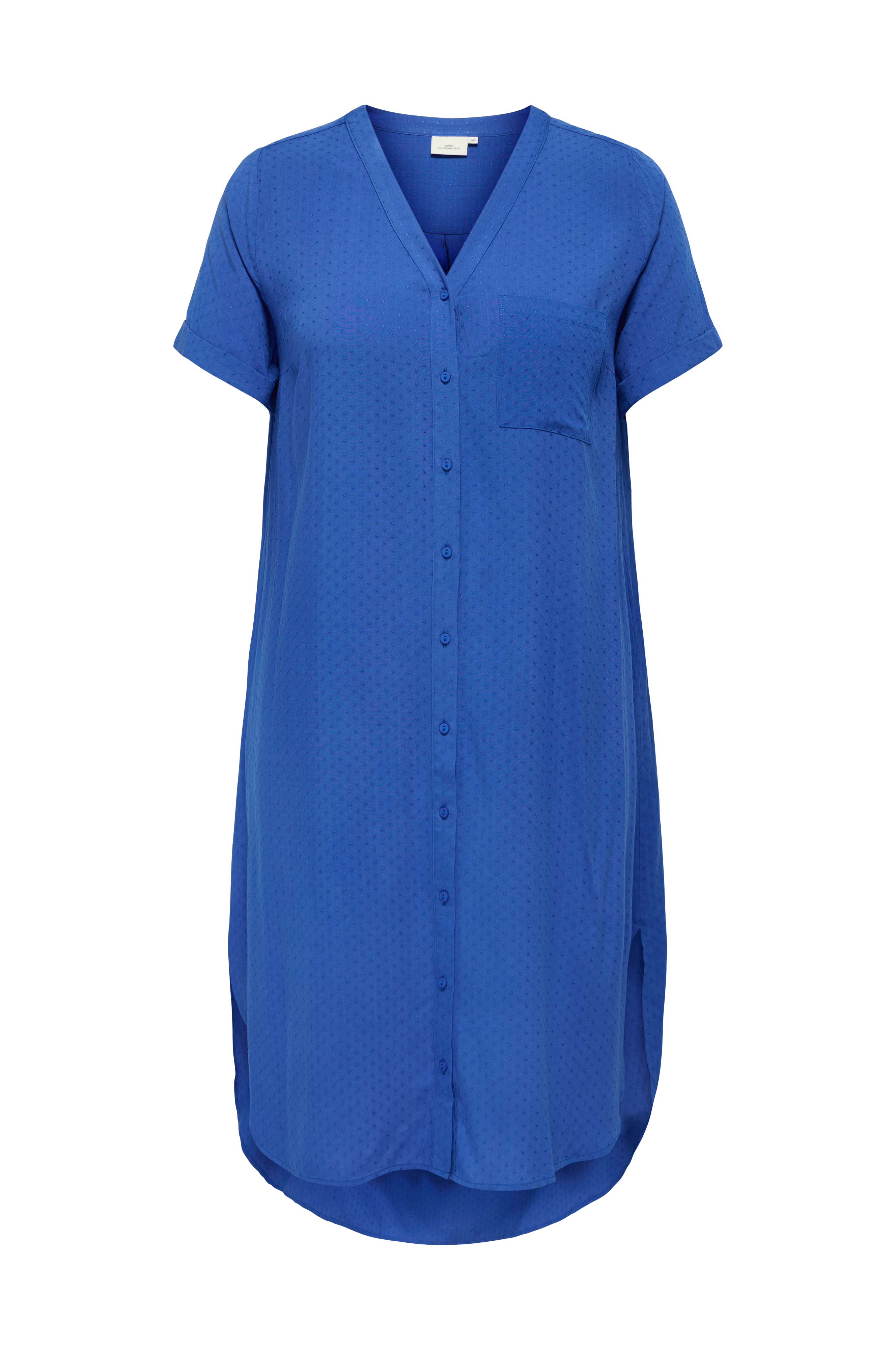 • Kjole i viskose • Prikket struktur • V-udskæring • Korte, foldede ærmer • Knapstolpe hele vejen frem • En brystlomme • To sidelommer • Afrundet søm med slids i siderne • Længde: 119 cm i størrelse 42