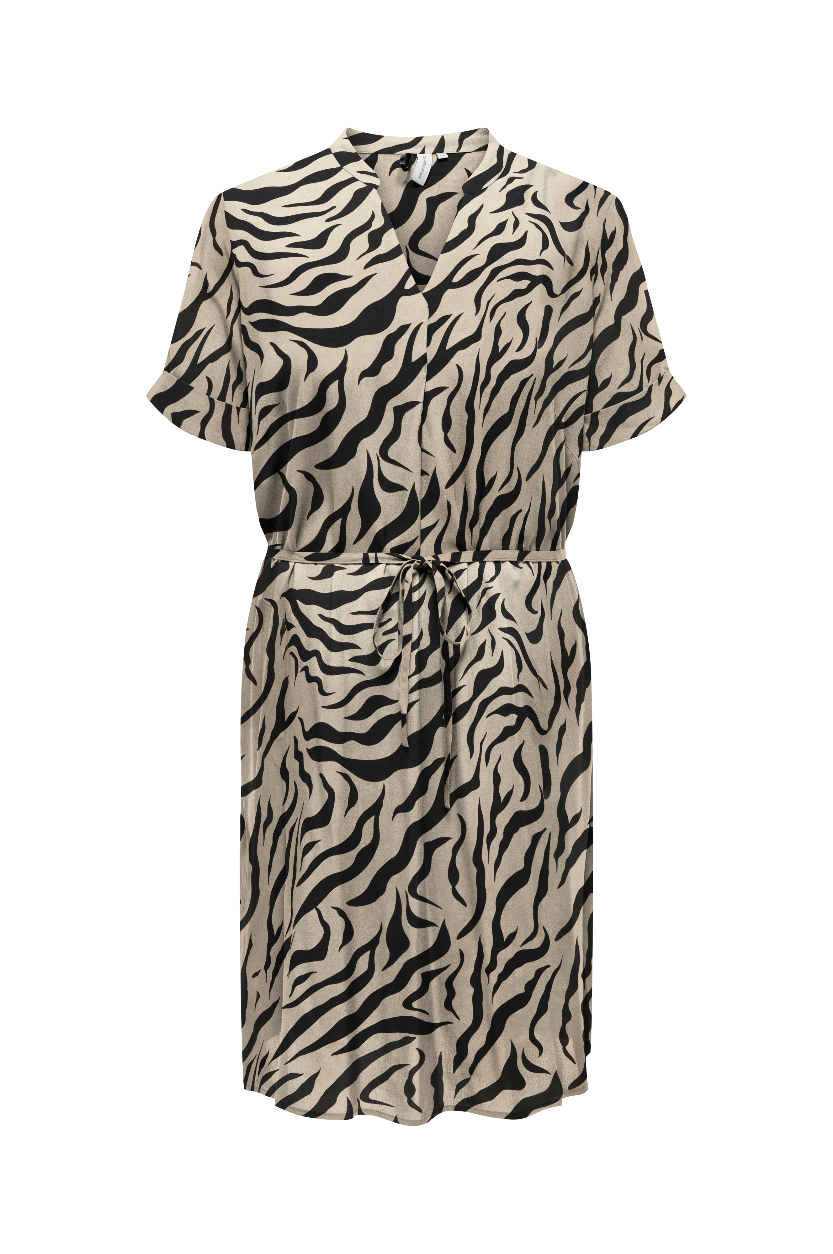 • Mønstret kjole i viskose• V-udskæring• Korte ærmer med oprullet• Bindebælte• Store størrelser• Længde: 110 cm i størrelse 42