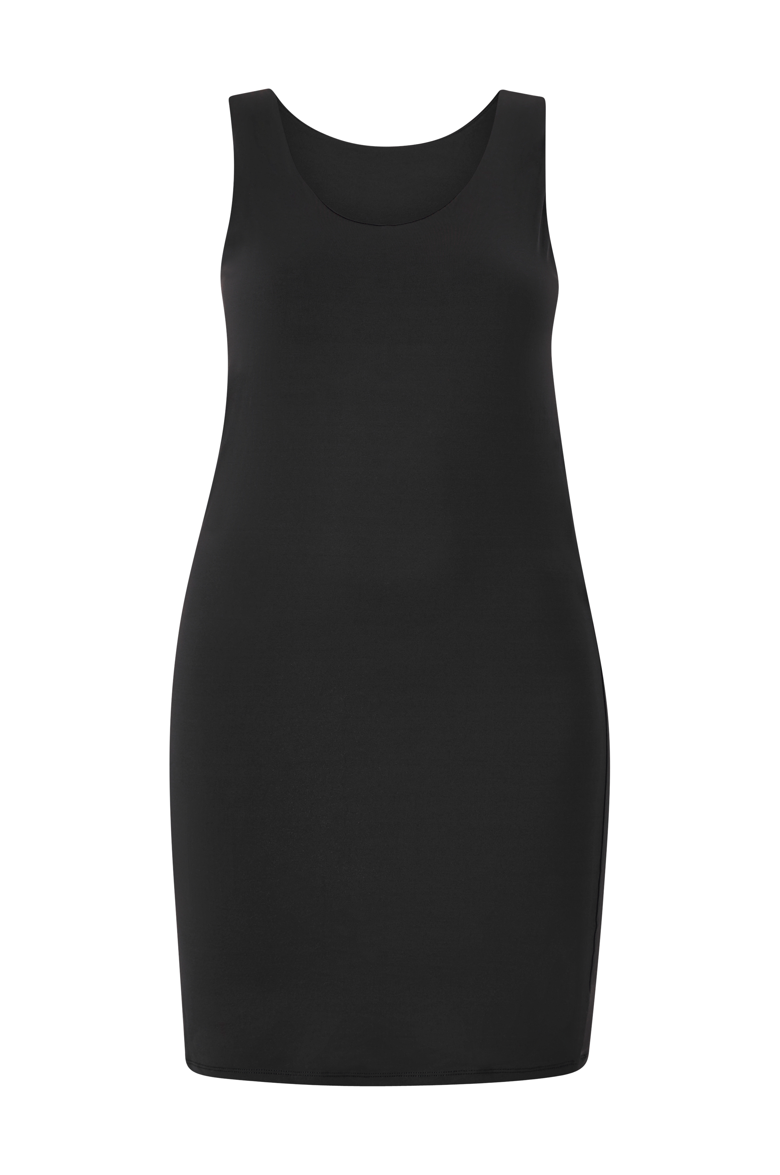 • Store størrelser• Figursyet, ærmeløs model• Vendbar halsudskæring foran og bagpå• Længde: 95 cm i størrelse S