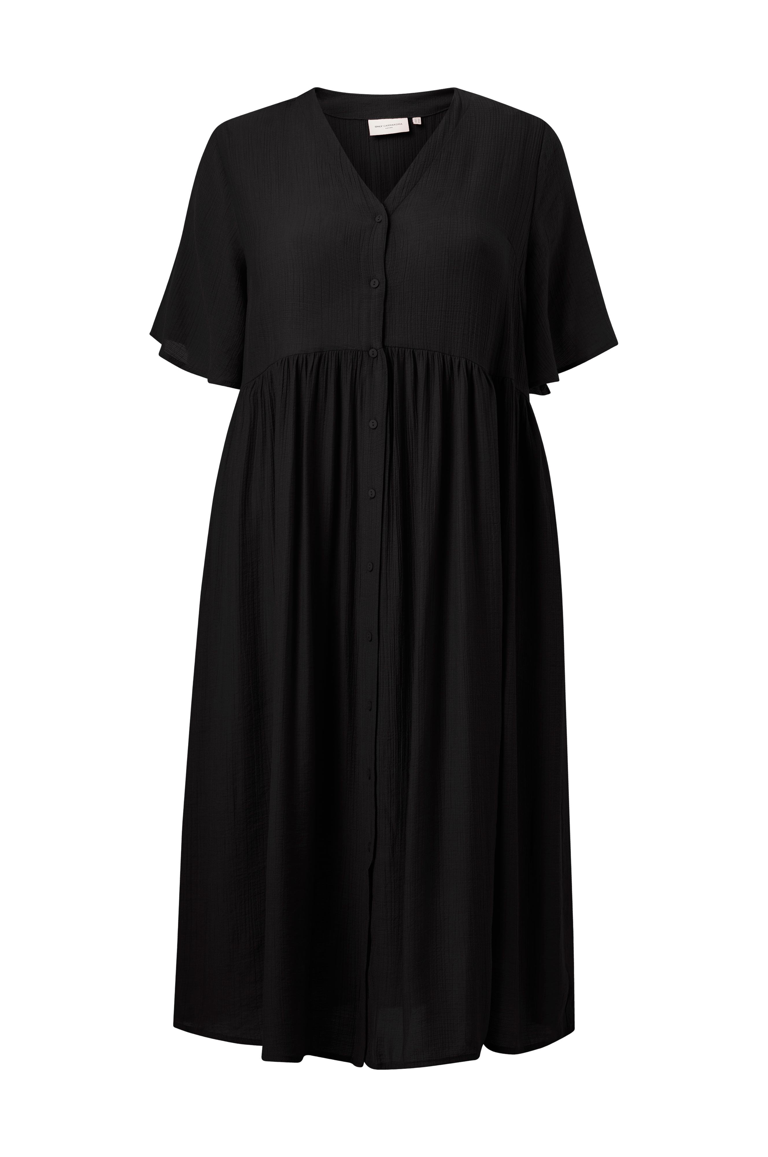 • Kjole i viskoseblanding• Korte sommerfugleærmer• V-udskæring• Knapper foran• Luftig kvalitet• Store størrelser• Længde: 121 cm i størrelse 42