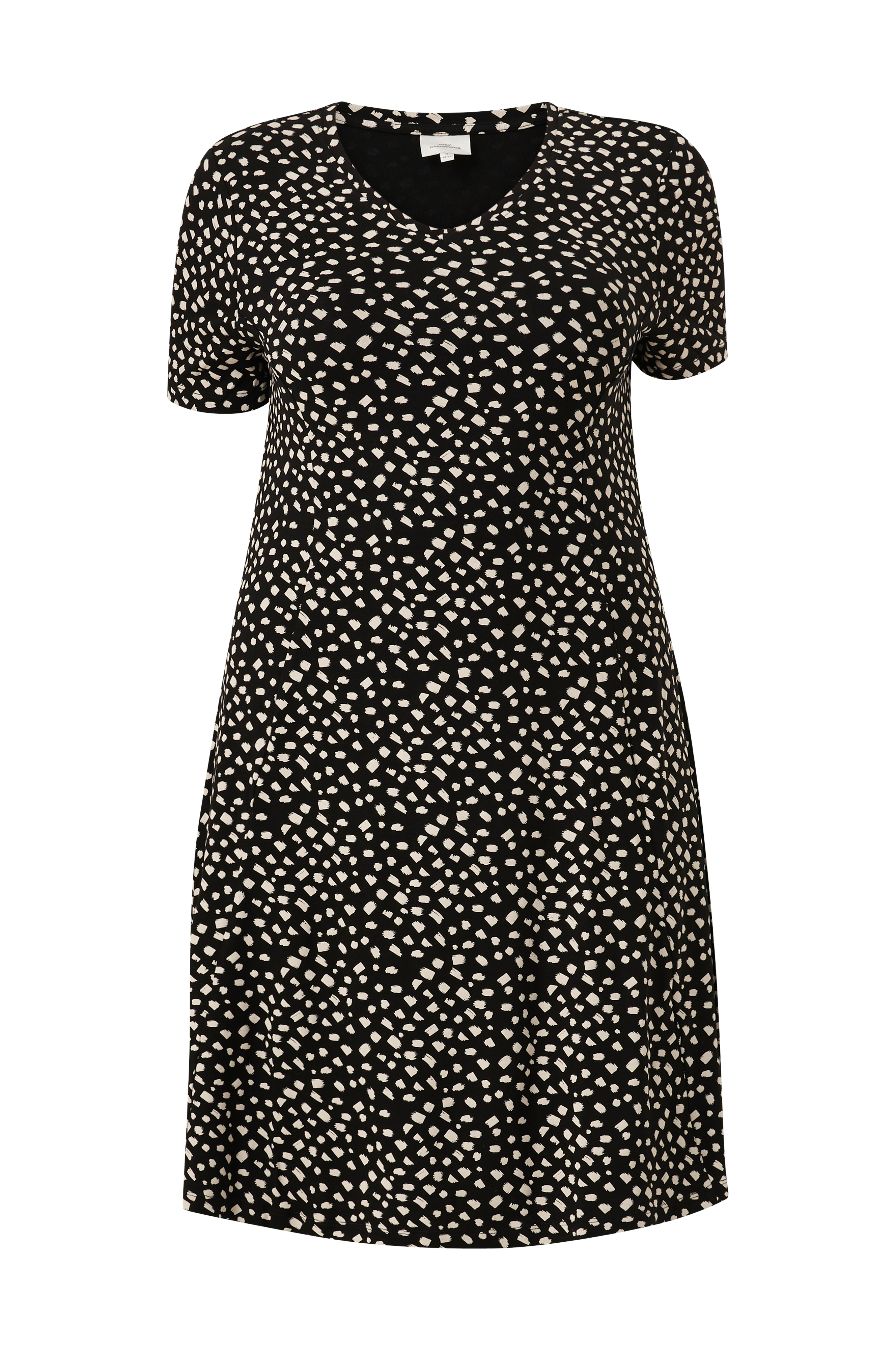 • Kjole i viskosejersey• V-udskæring• Korte ærmer• Store størrelser• Længde: 100 cm i størrelse S