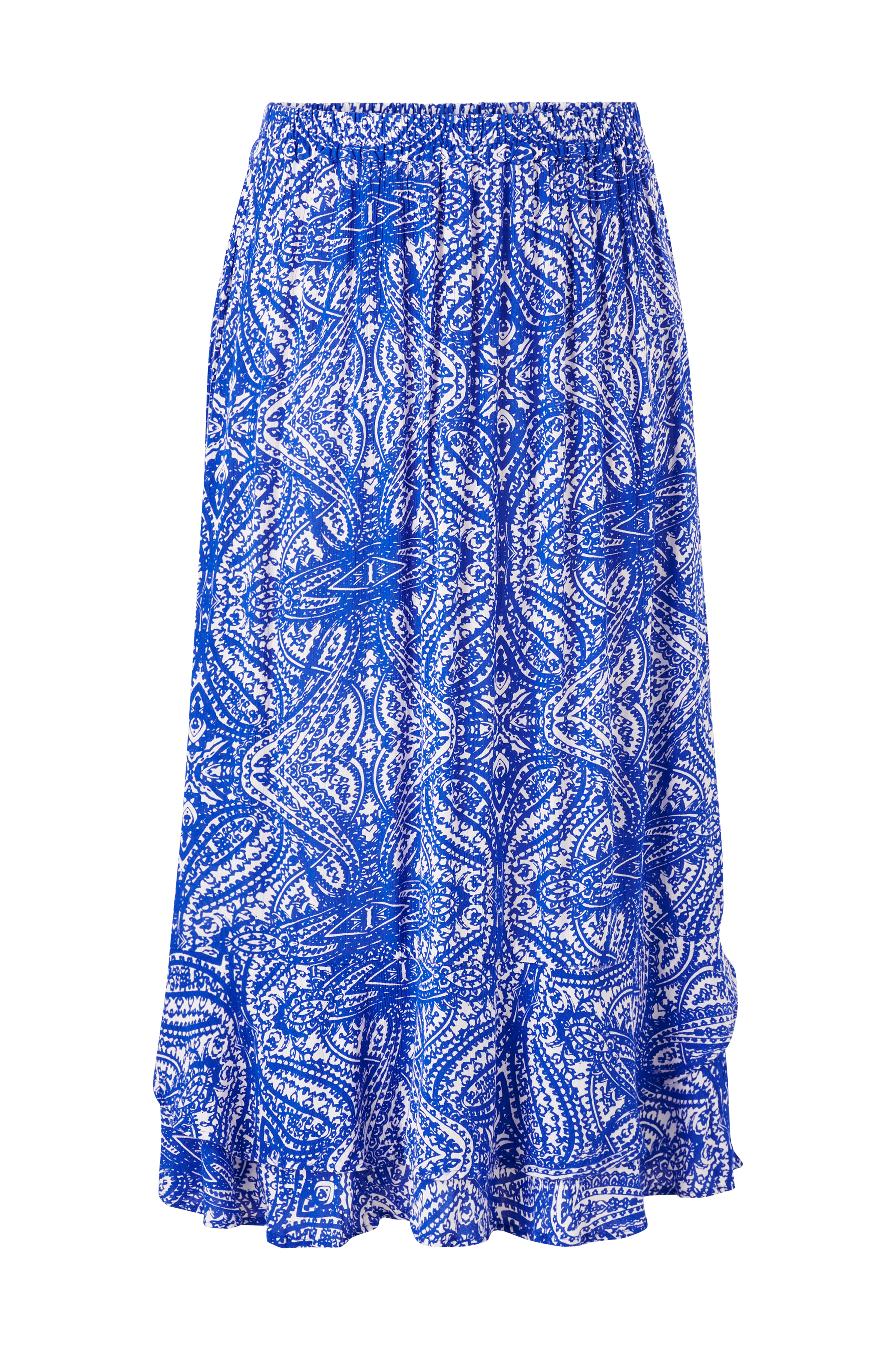 • Elastisk talje • Volant nederst • Rynket kvalitet • Store størrelser • Længde: 93 cm i størrelse 42 • Produktet indeholder viskose fra Livaeco by Birla Cellulose™, en syntetisk cellulosefiber af træmasse der kommer fra kontrolleret og ansvarsfuldt skovbrug.