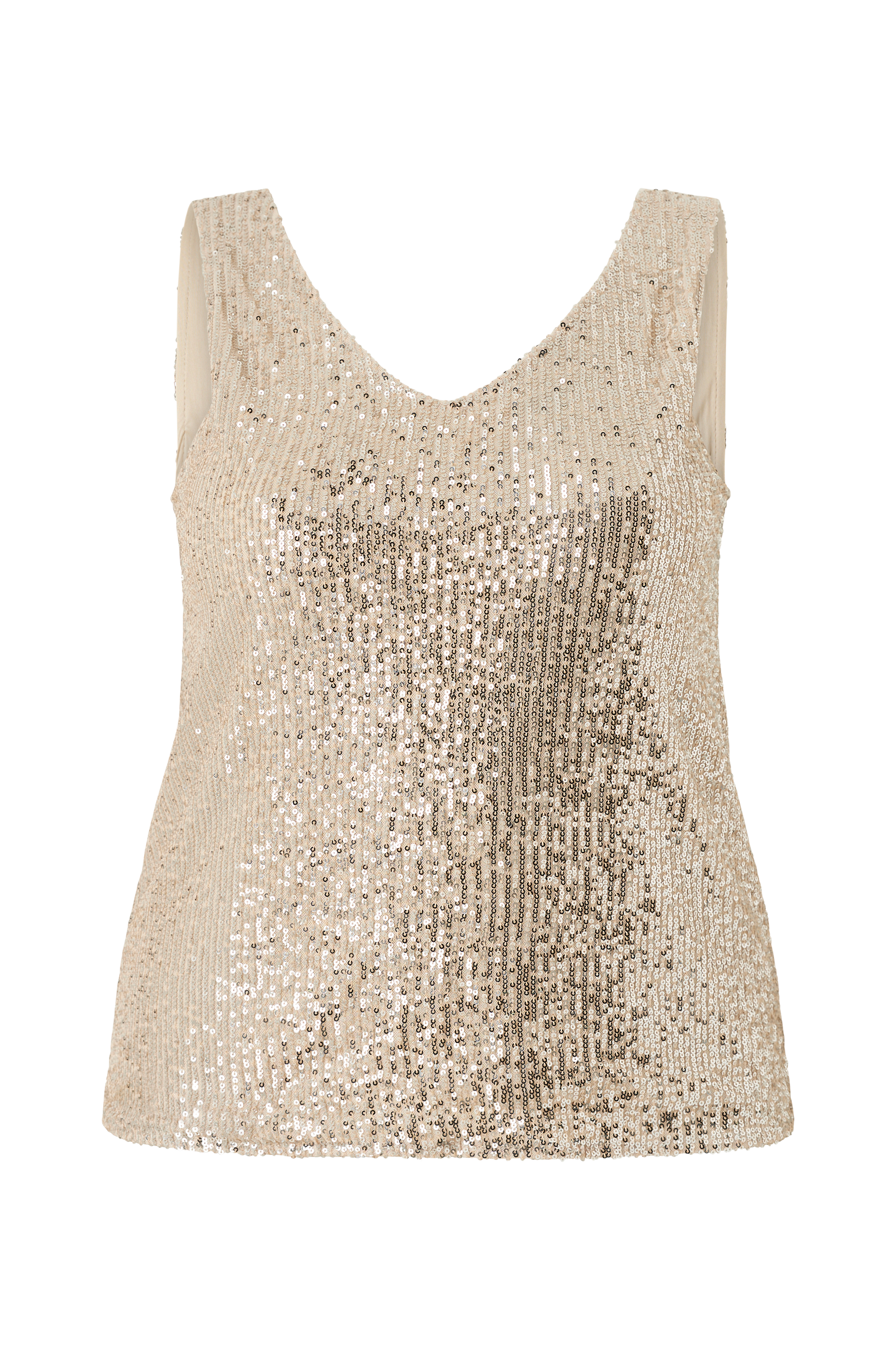 • Ærmeløs top med pailleter• V-udskæring foran og bagpå• Trikotfor• Store størrelser