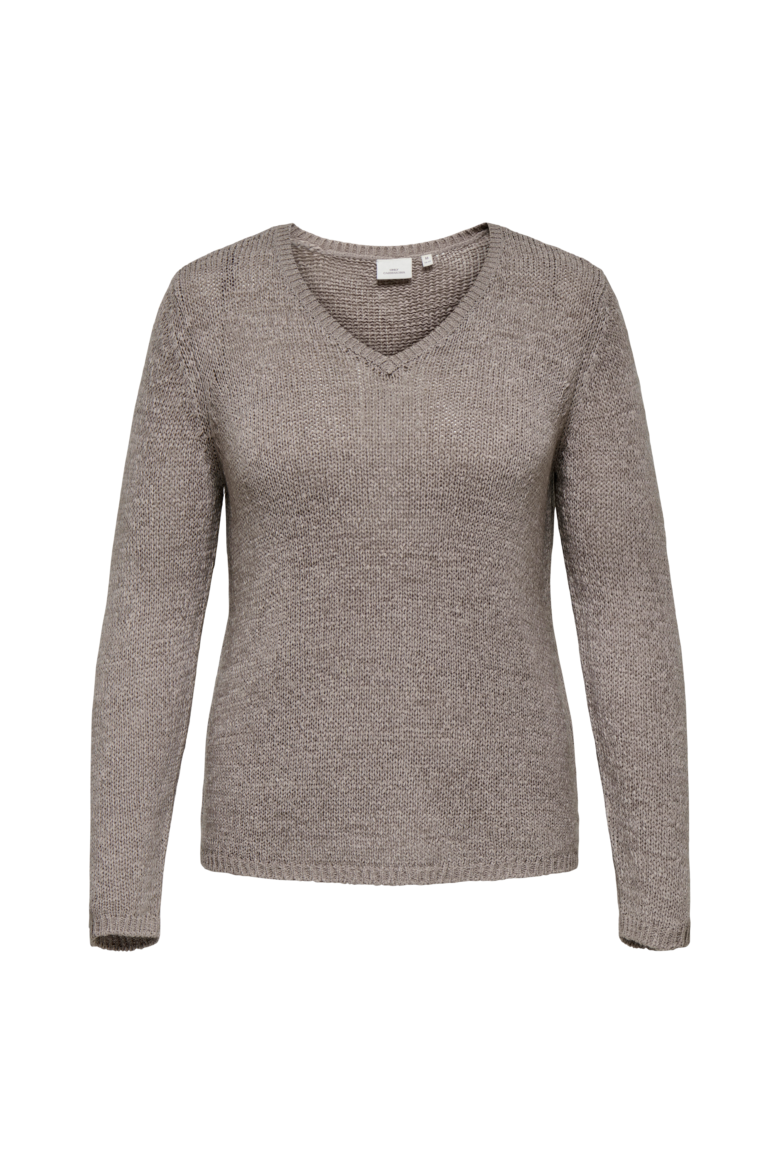 • Løststrikket, langærmet Pullover med v-formet halsudskæring• Ribstrik i halsen, ved manchetterne og ved nederste kant• Plusstørrelser