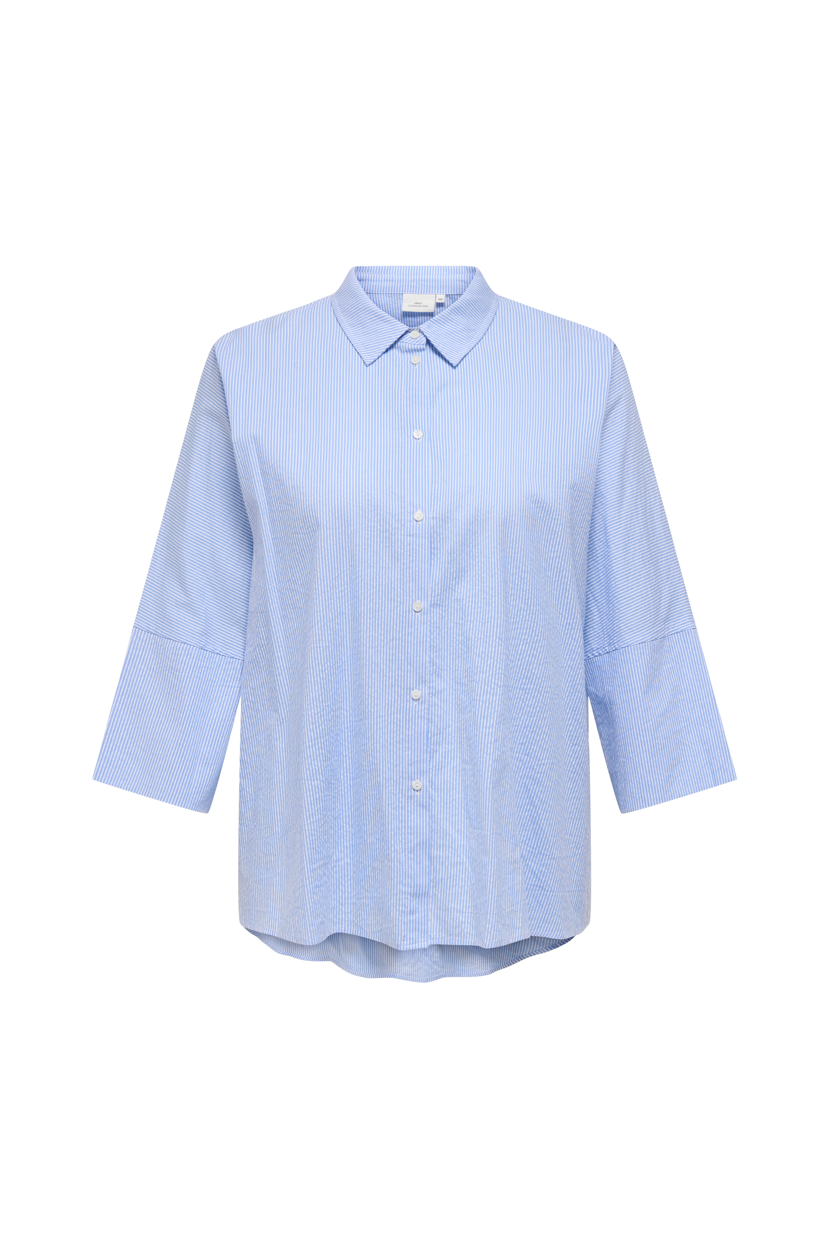 • Store størrelser• Bred model med svaj• Lille krave• Lige, kimonoskåret ærme• Afrundet søm bagpå