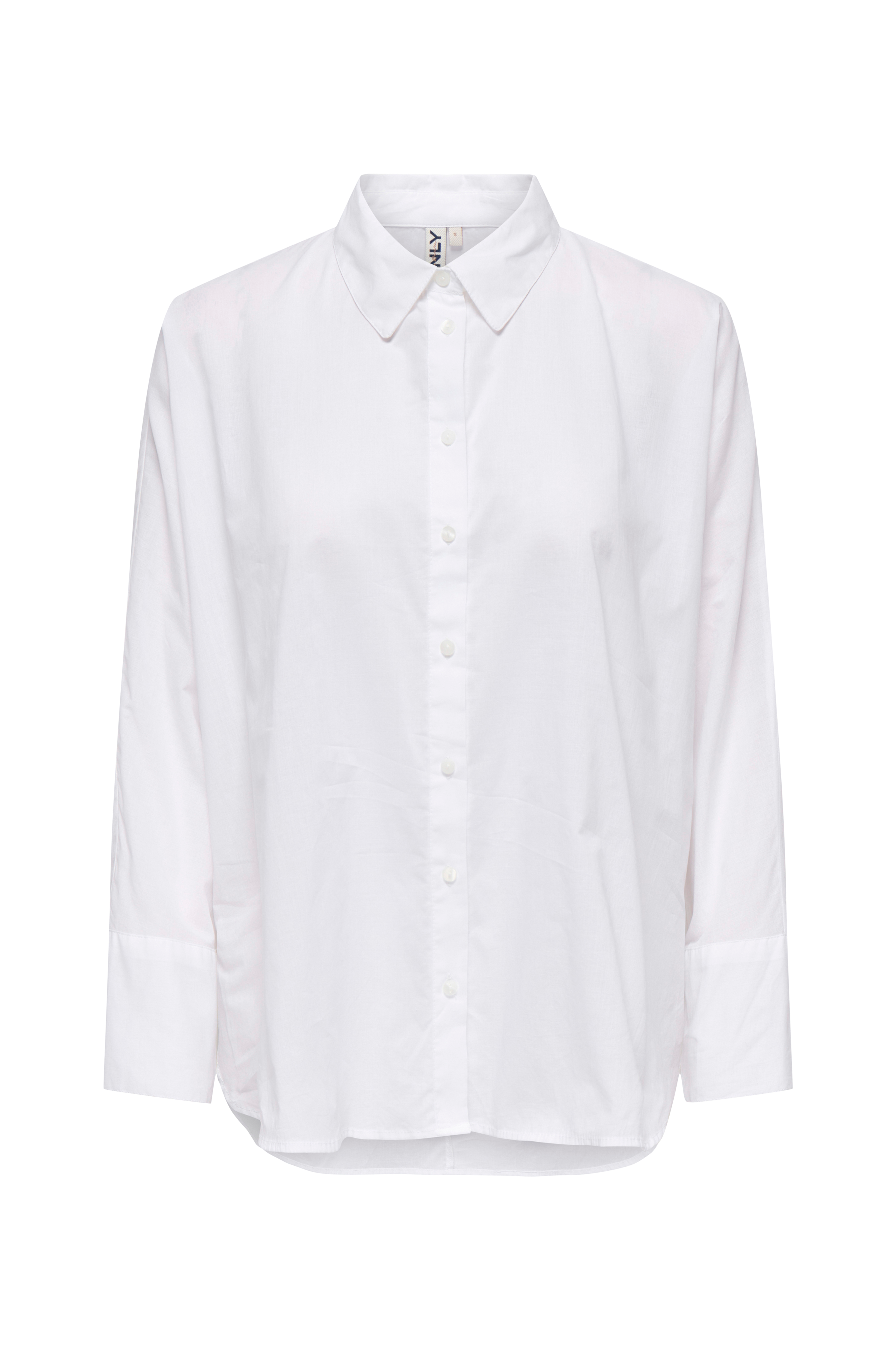 • Store størrelser• Lige, bred model• Lille krave• Knapper foran• Lige, bredt ærme• Afrundet søm
