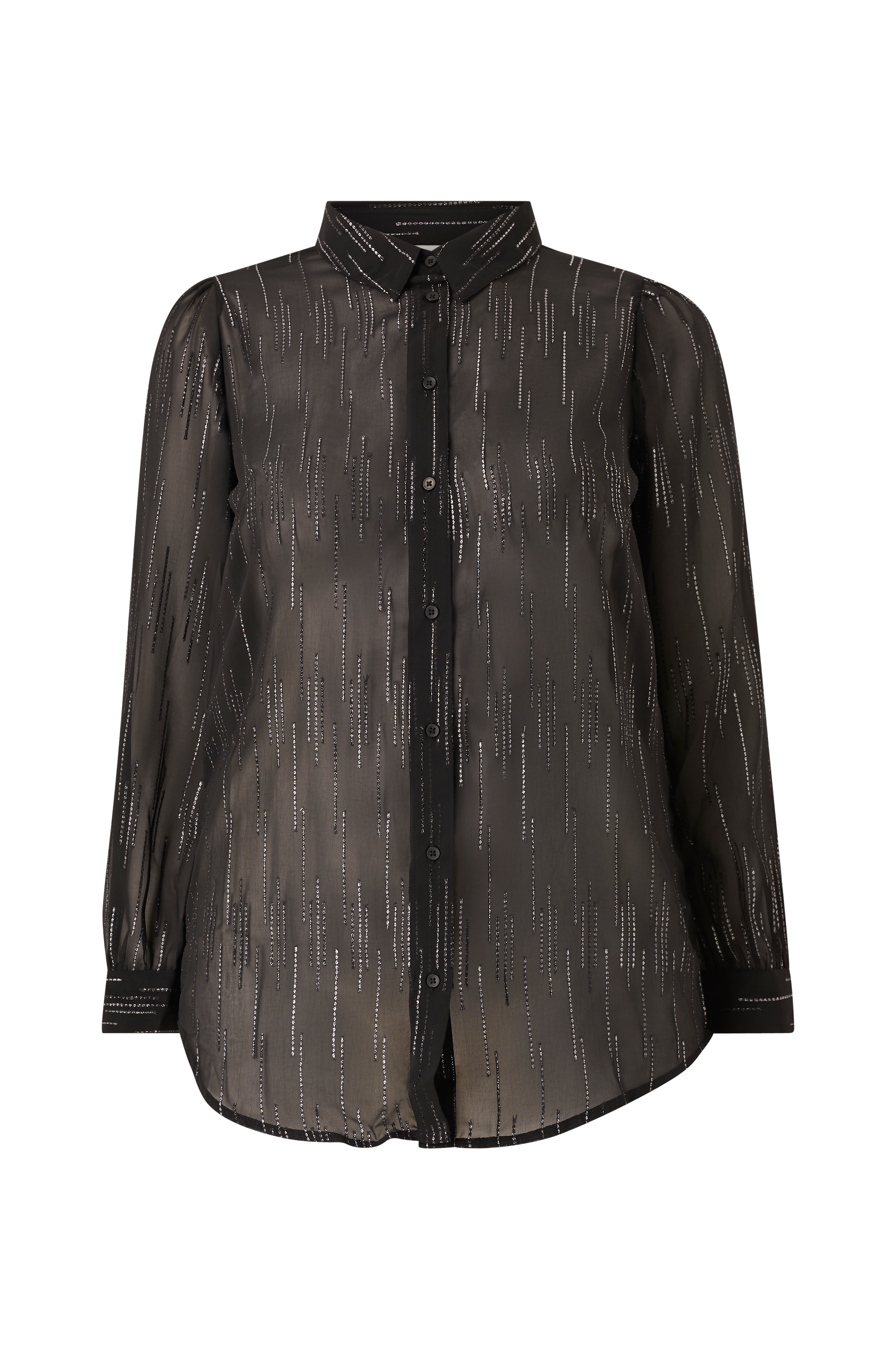 • Transparent skjorte med glimmertråd• Knapper foran• Manchet ved manchetterne• Store størrelser
