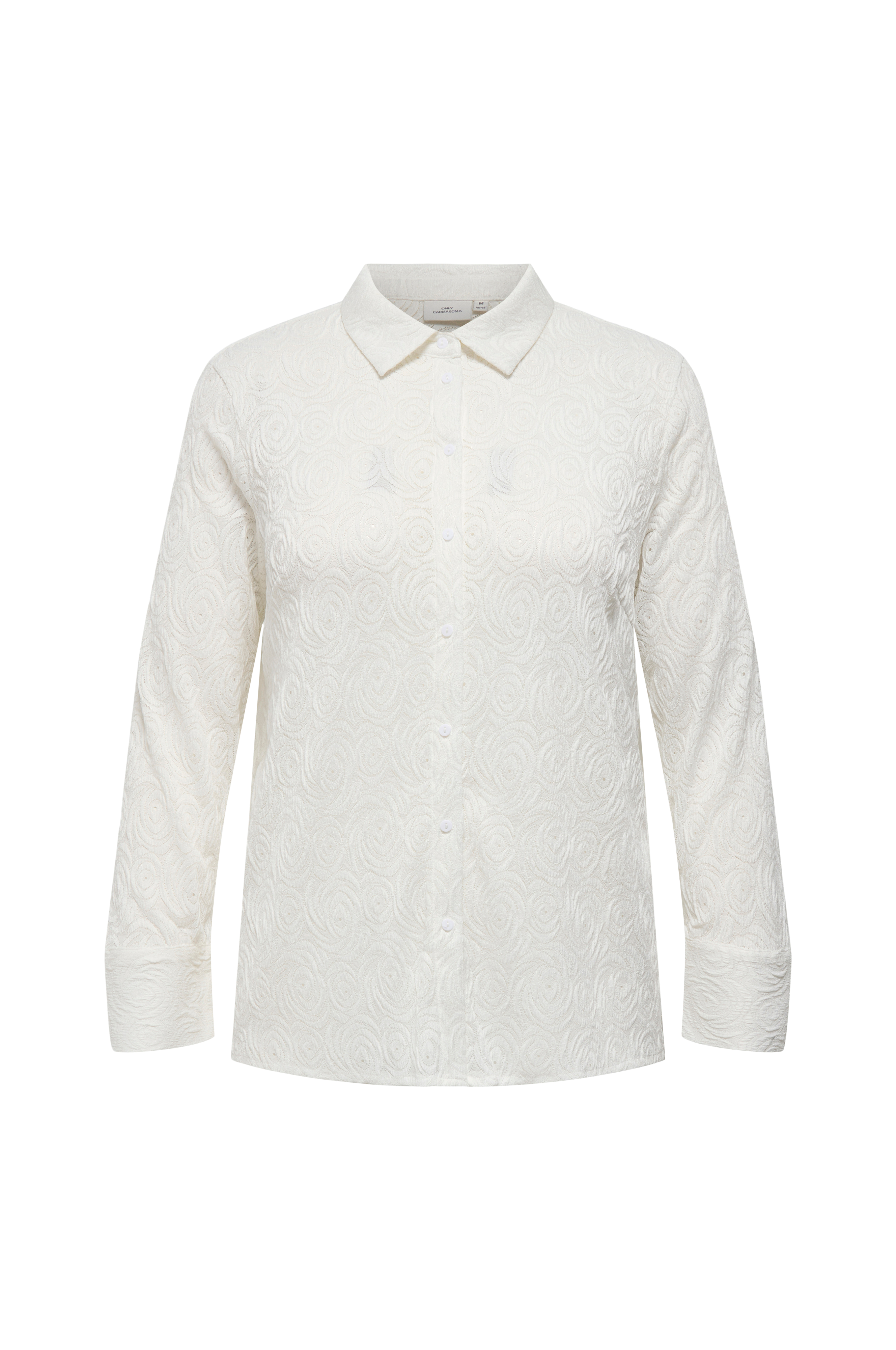 • Store størrelser• Lige, mønsterstrikket model• Lille krave• Knapper foran• Langt ærme