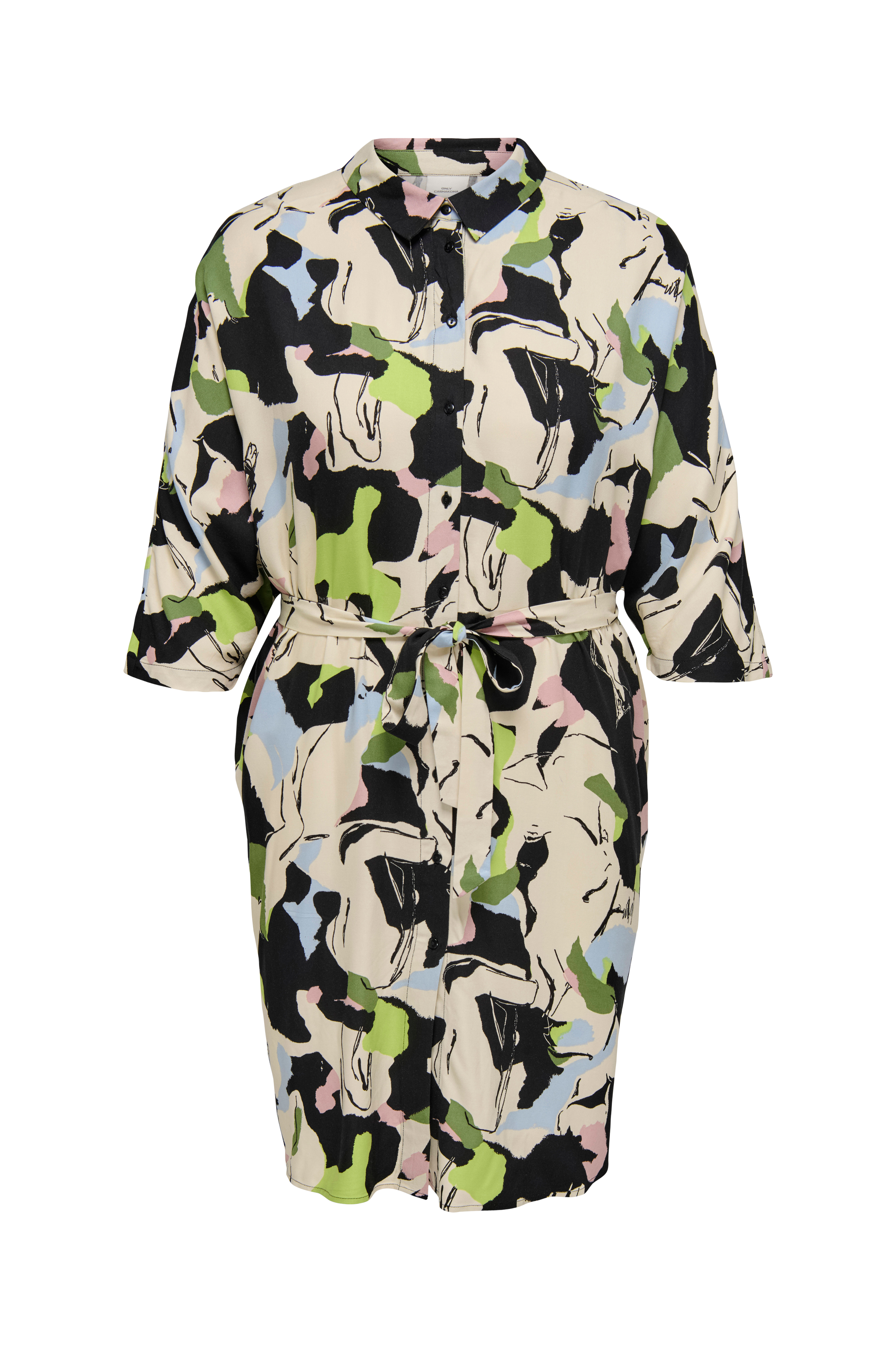• Store størrelser• Lige, uformel model• Lille krave• Knapper hele vejen frem• 3/4 langt, kimonoskåret ærme• Slids nede i siderne• Længde: 102 cm i størrelse 42