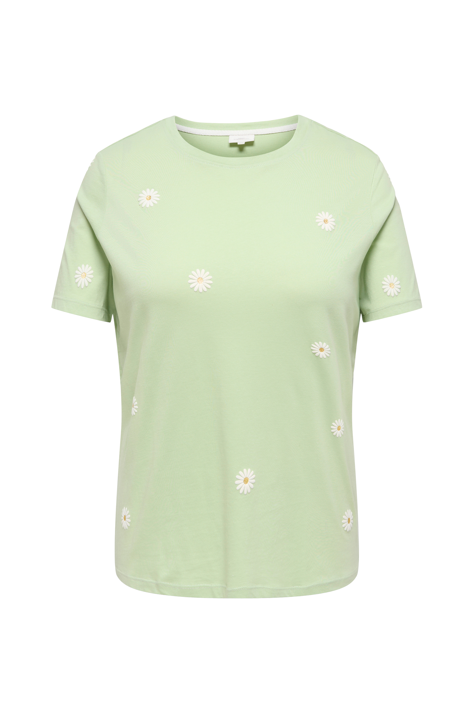 • T-shirt i bomuld• Rund, ribbet halsudskæring• Dekorative blomster foran• Plusstørrelser