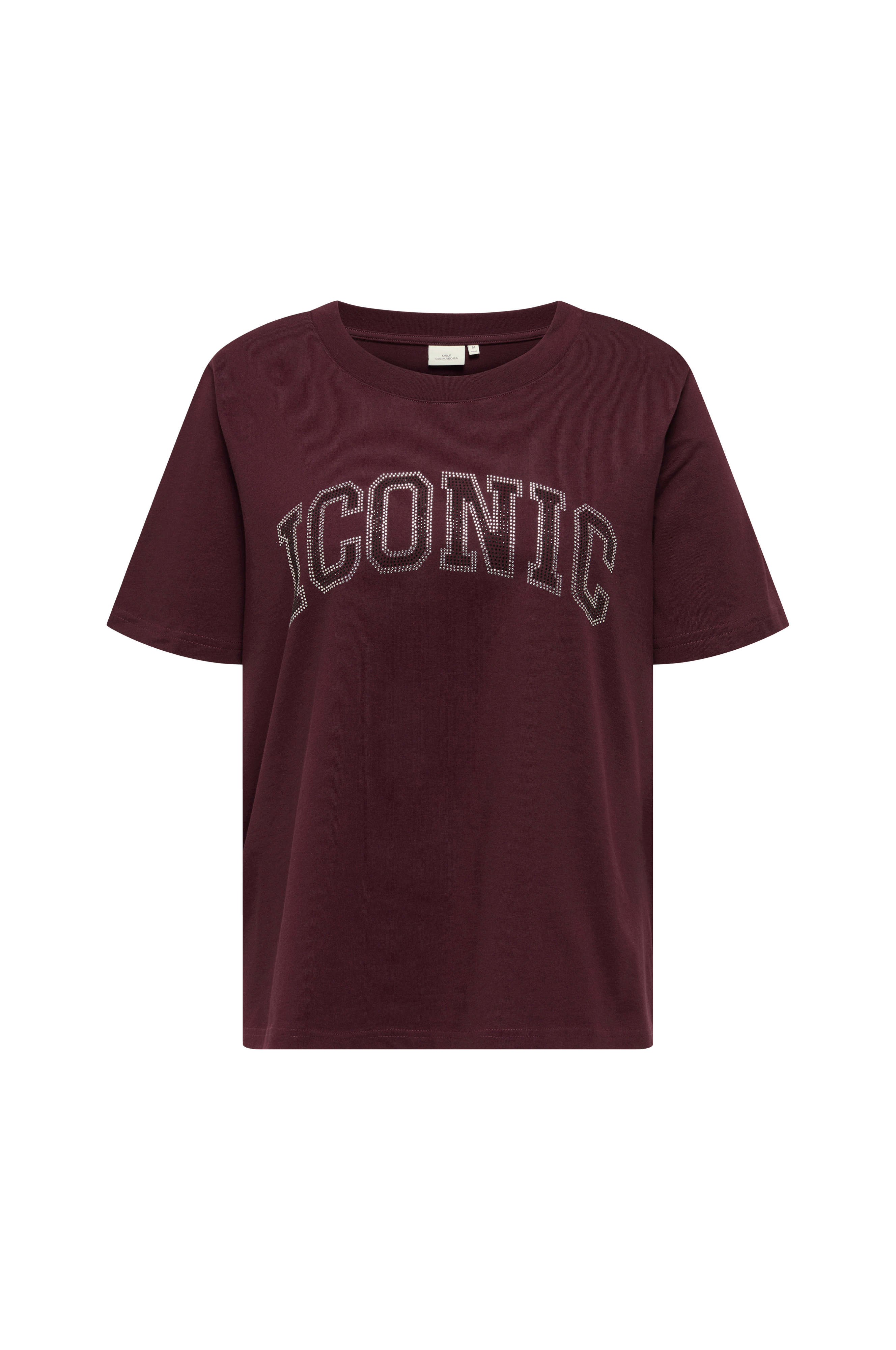 • T-shirt i bomuld• Rund, ribbet halsudskæring• Tekstudskrift med rhinstene på brystet• Plusstørrelser