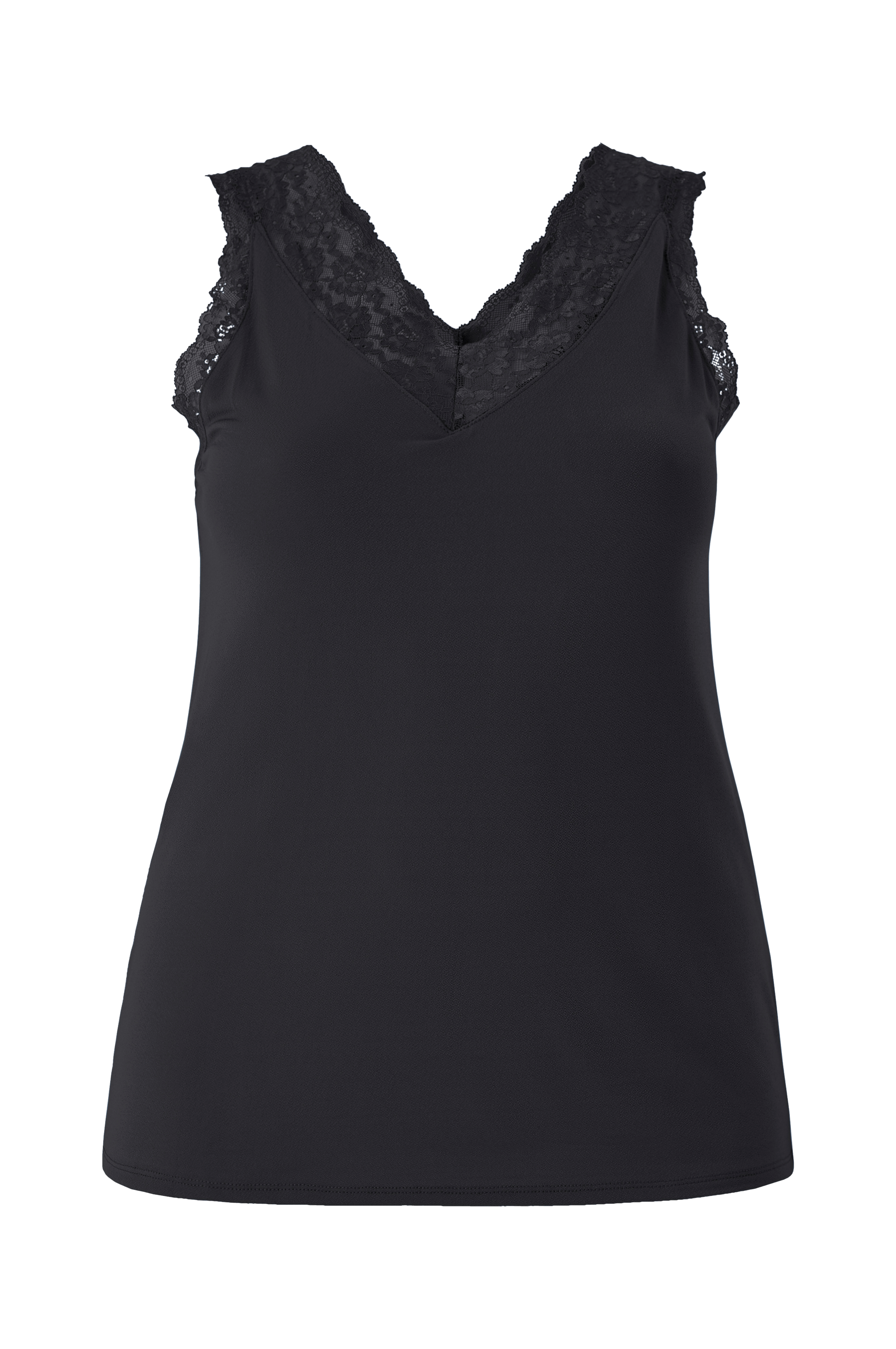 • Ærmeløs top i jersey• V-udskæring med blonde foran og bagpå• Store størrelser