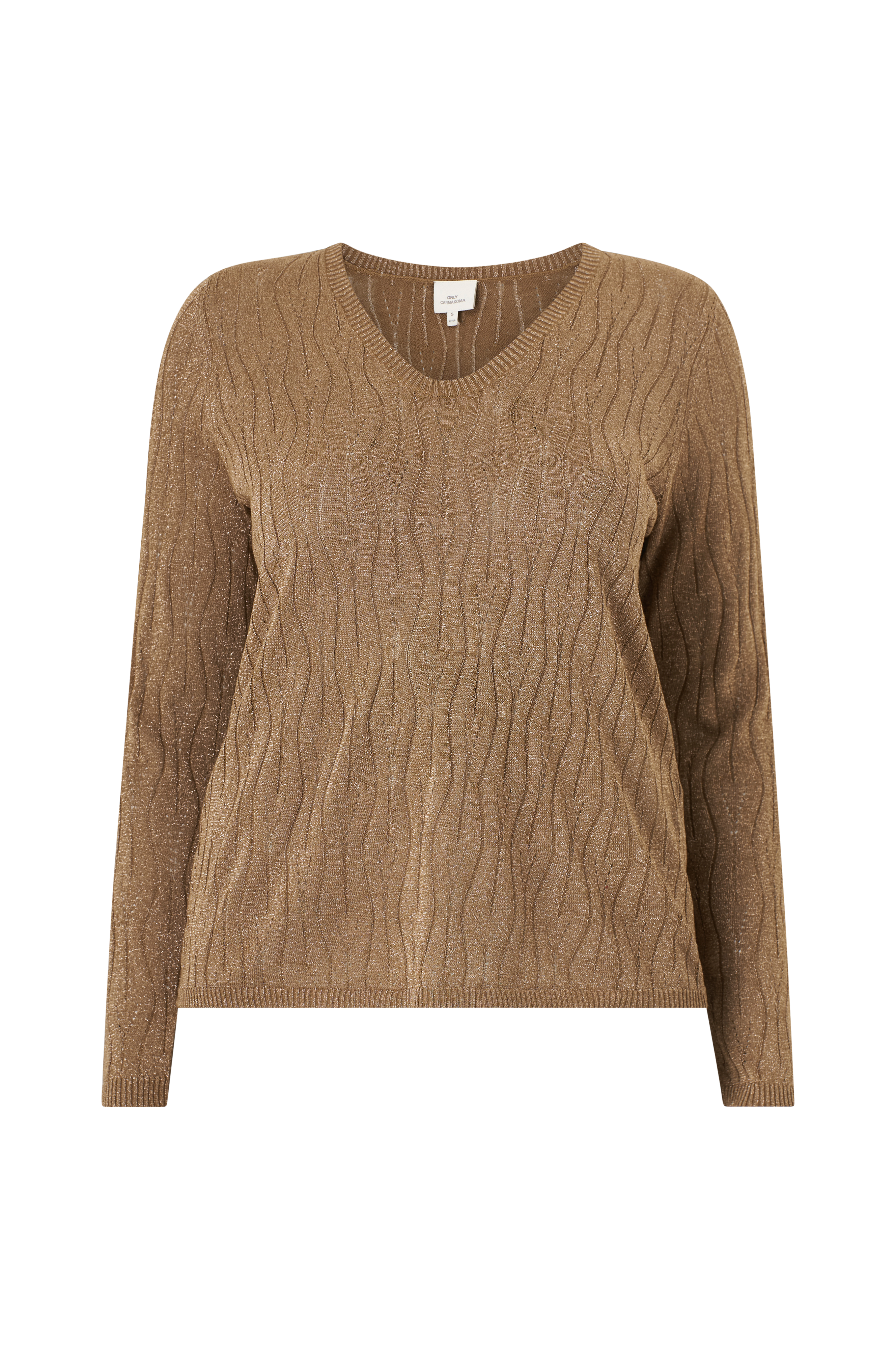 • Store størrelser• Mønsterstrikket model med glitter• V-formet halsudskæring• Langt ærme• Ribstrikkede kanter