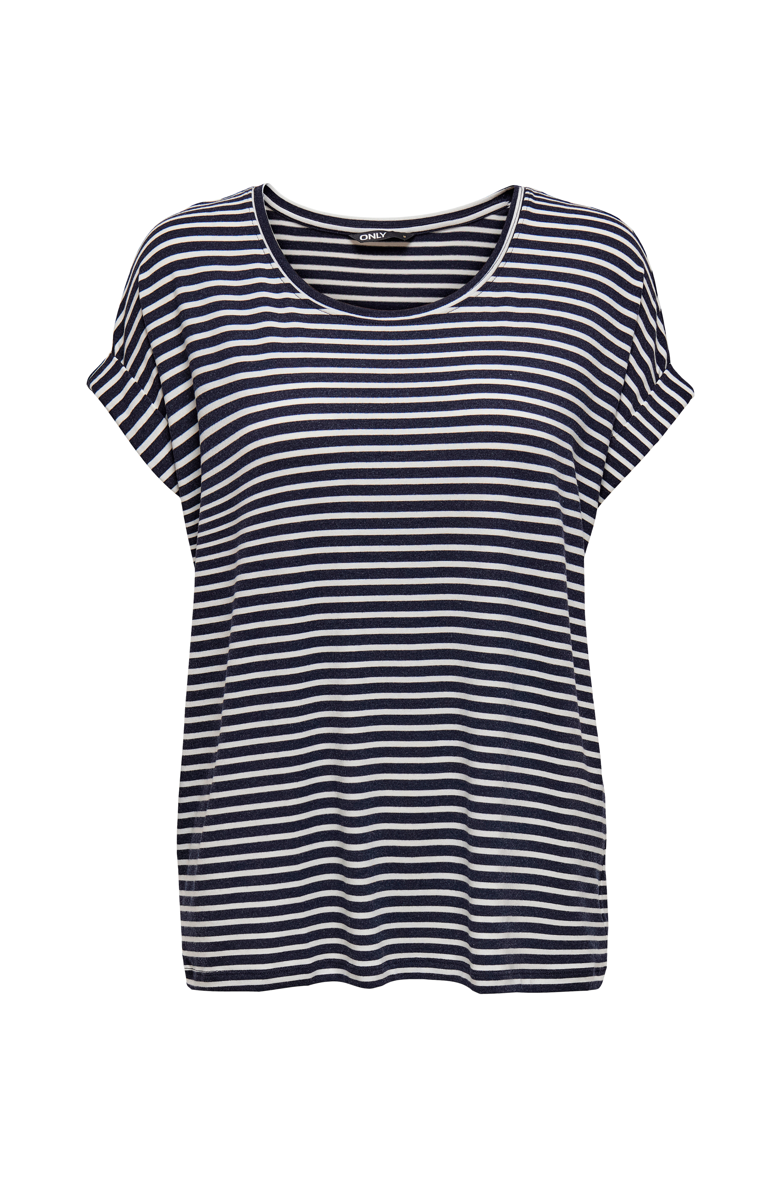 • Kortærmet, stribet top i elastisk viskoseblanding• Rund halsudskæring• Syede ærmeafslutninger• Plusstørrelser