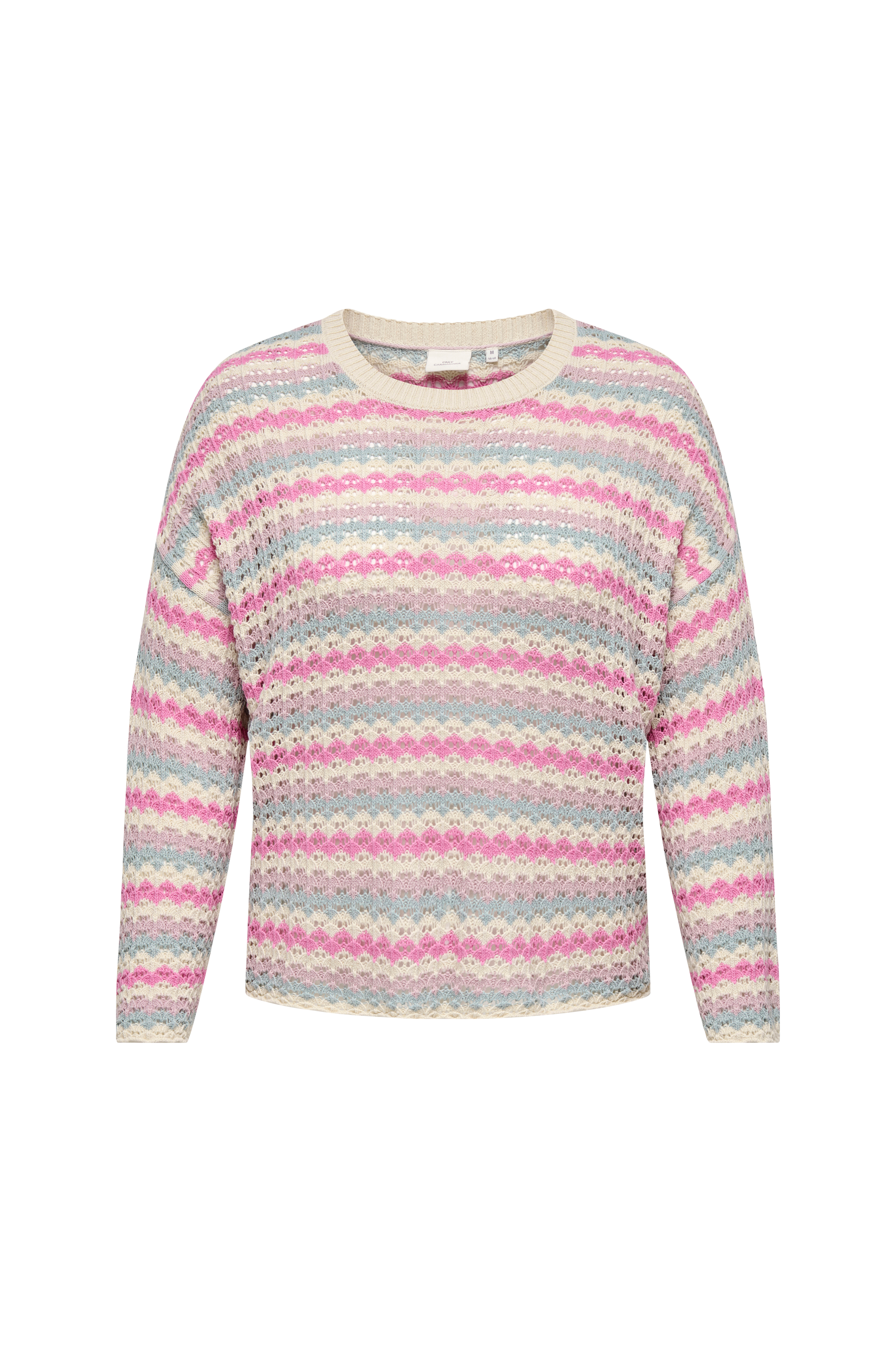 • Løststrikket trøje i bomuldsblanding med hulmønster• Rund, ribbet halsudskæring• Lange ærmer• Store størrelser