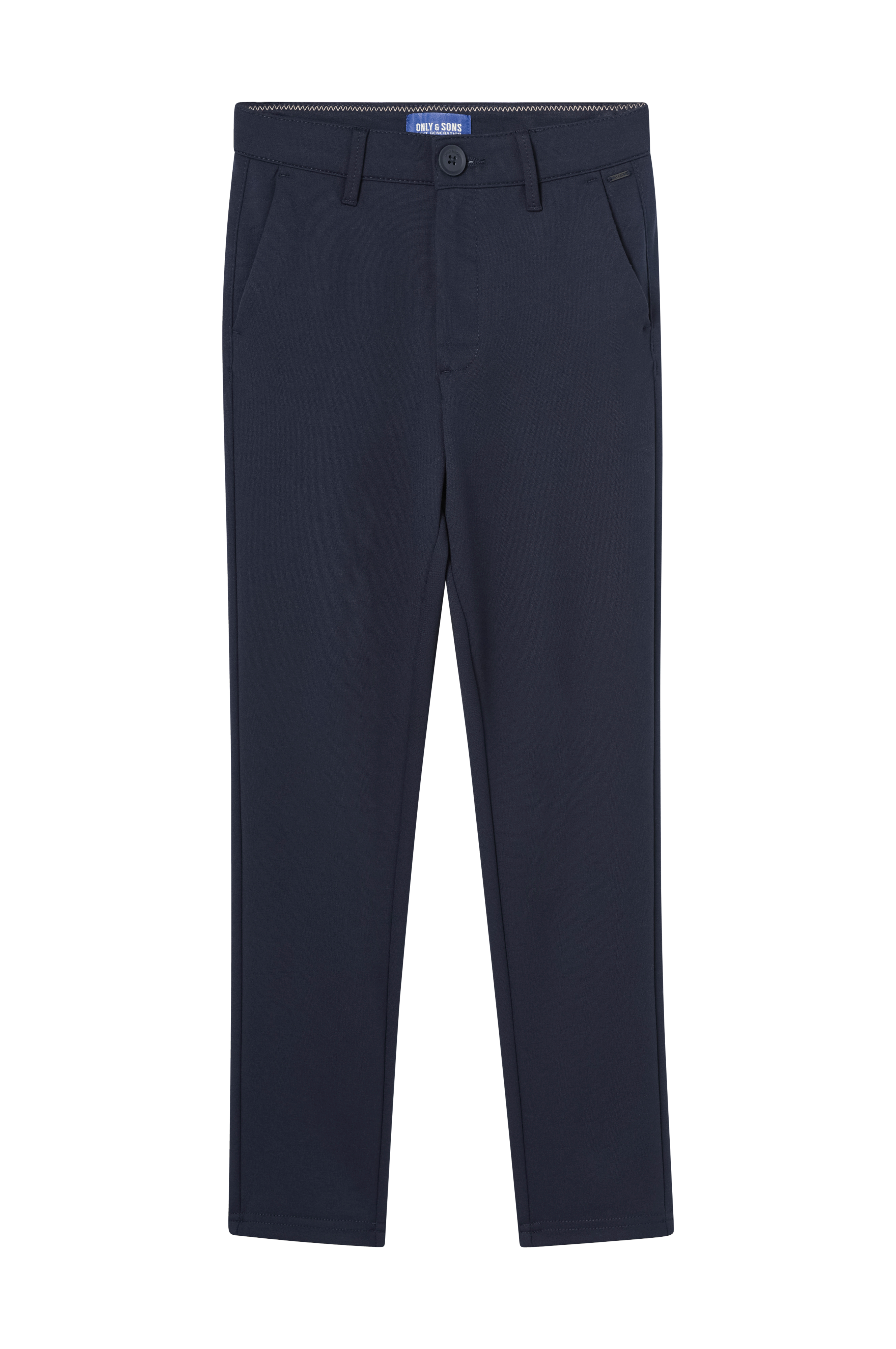 • Bukser med let indsnævrende pasform• Normalhøj talje• Bælteløkker• Lynlås- og knaplukning• Sidelommer• Baglommer