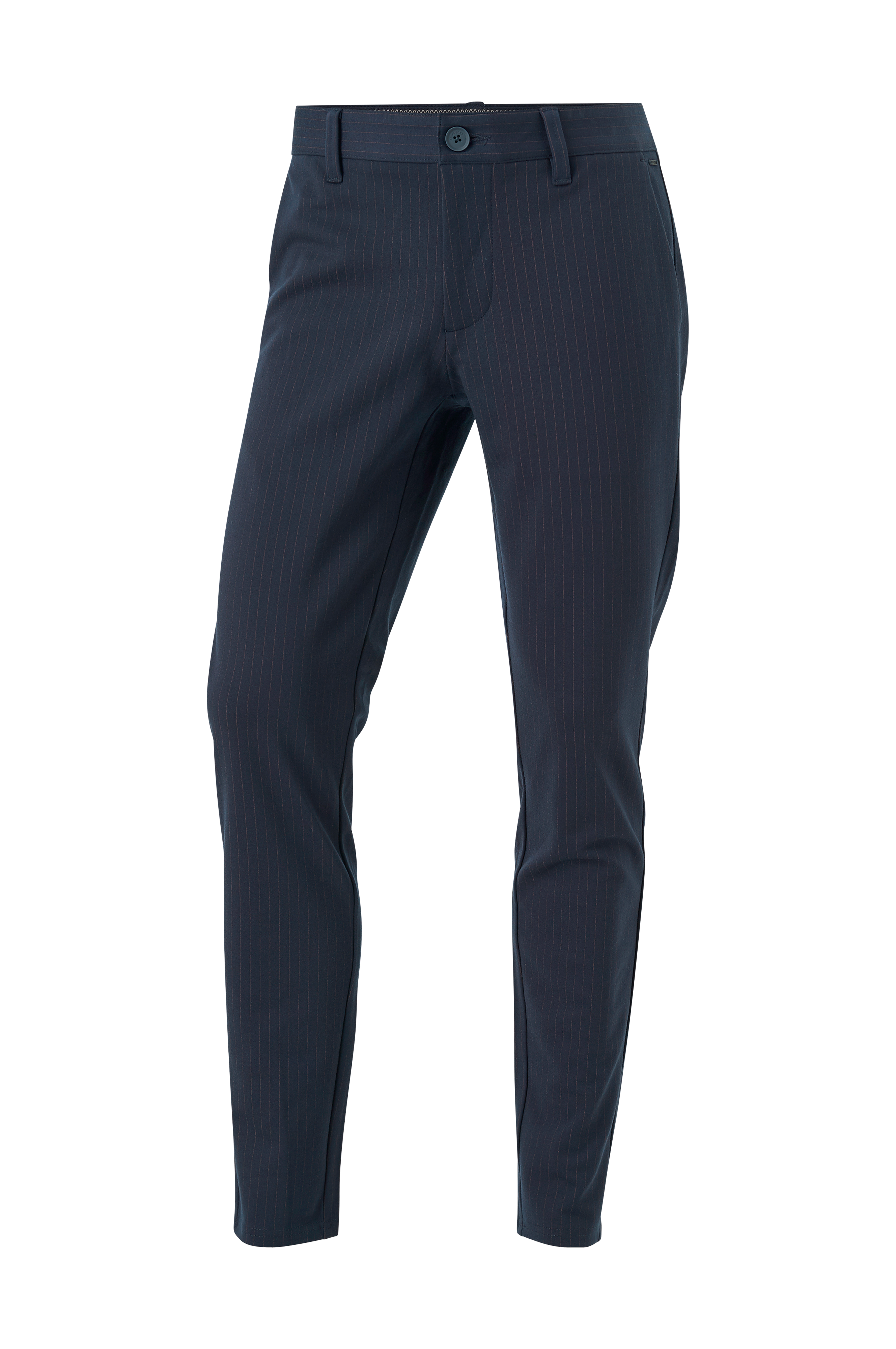 Bukser onsMark Pant Stripe GW 3727 Noos fra Only & Sons i behagelig stretchkvalitet med smalle, diskrete striber. Linning med stropper, knap og gylp med lynlås. To lommer foran og to indsatte baglommer med knap.