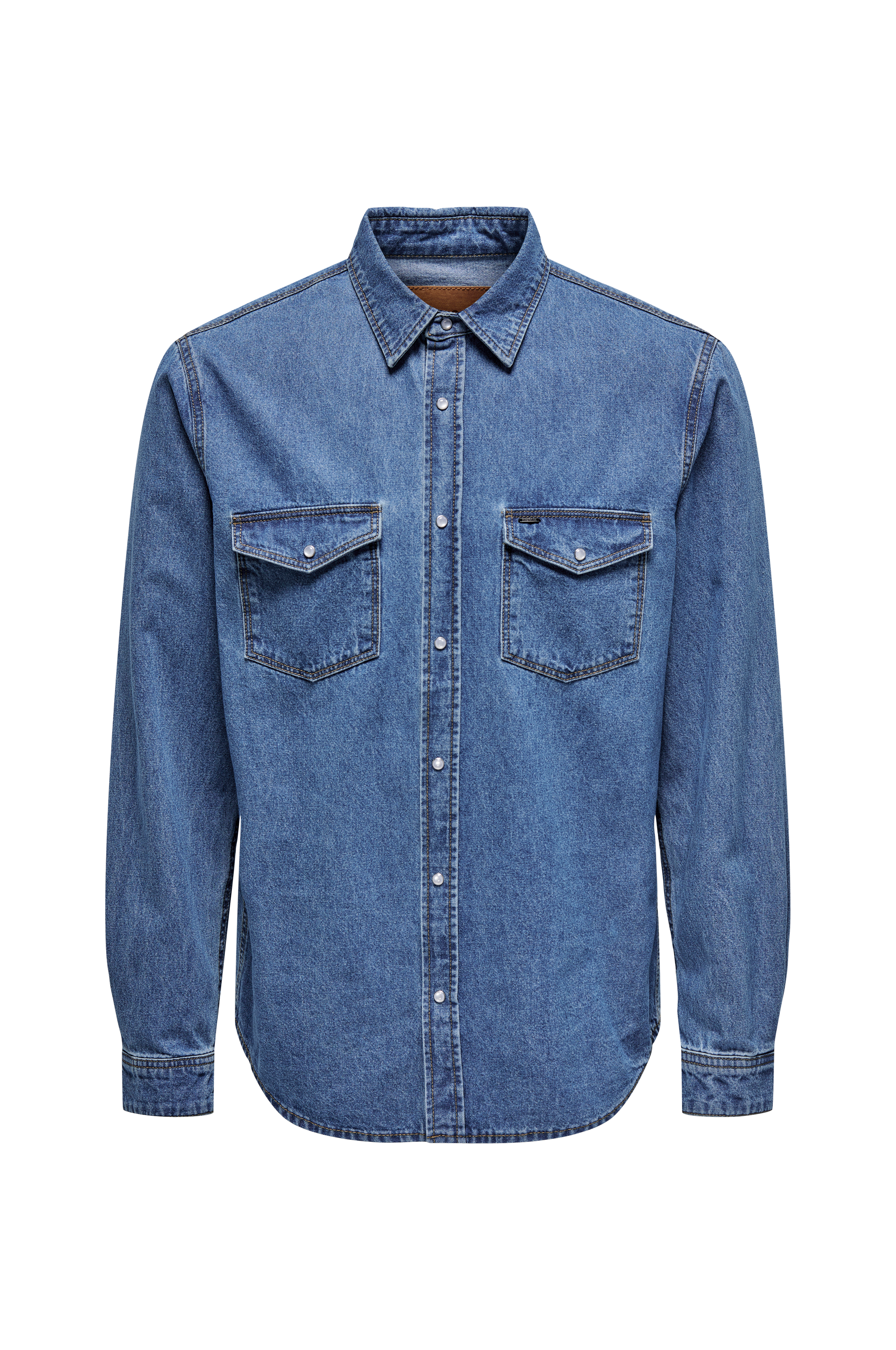 • Cowboyskjorte i bomuldsdenim• Trykknapper med perlemorslook• To brystlommer med knapbare lommelåg• Trykknap ved manchetterne