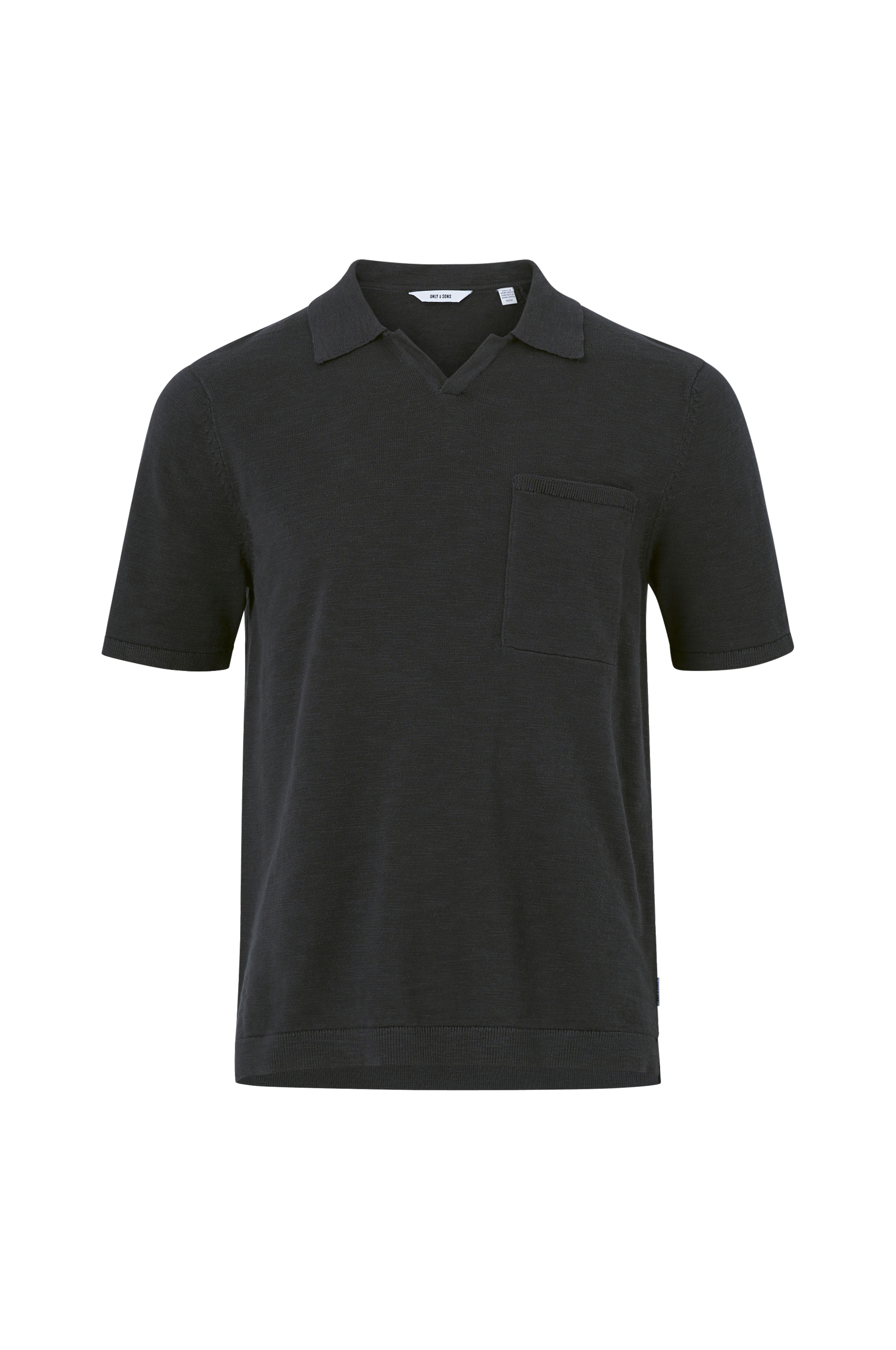 • Ribbet krave• V-formet halsudskæring• Brystlomme• Ribbede kanter på ærmeafslutningerne og nederst