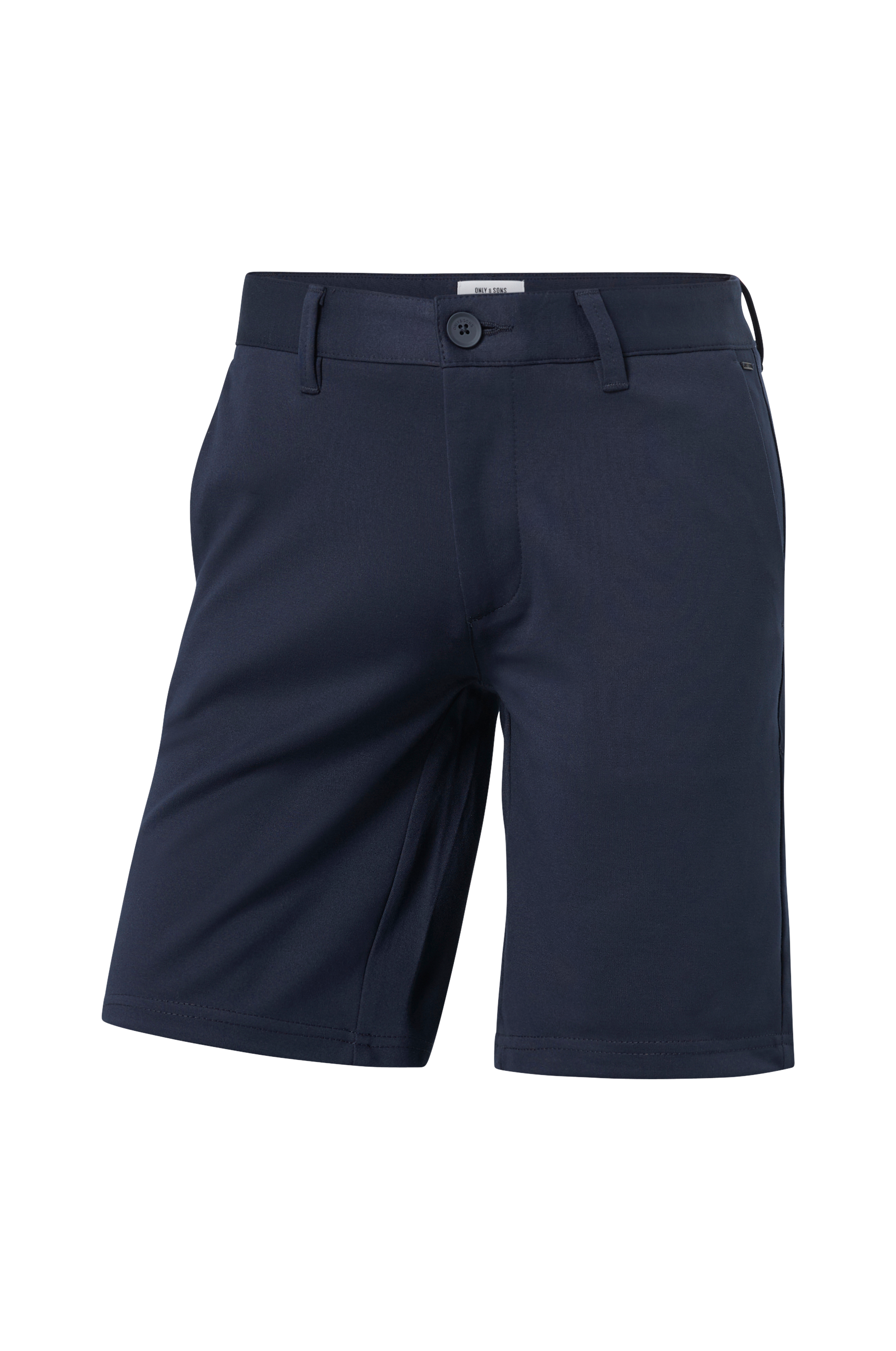 Shorts i stylet model med lommer i siderne og to indsatte baglommer med knap. Linning med stropper og knap. Gylp med lynlås. I kraftig jersey med stretch.