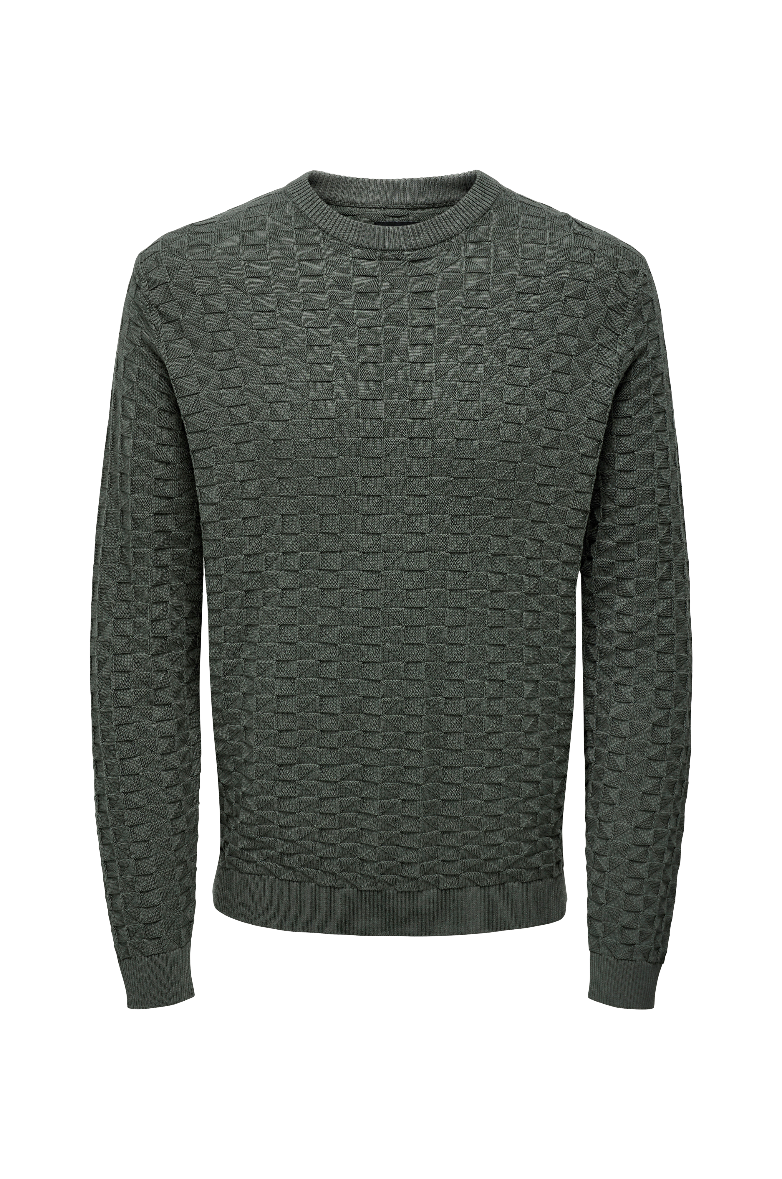 • Strukturstrikket trøje• Ribstrik ved manchetterne og nederst