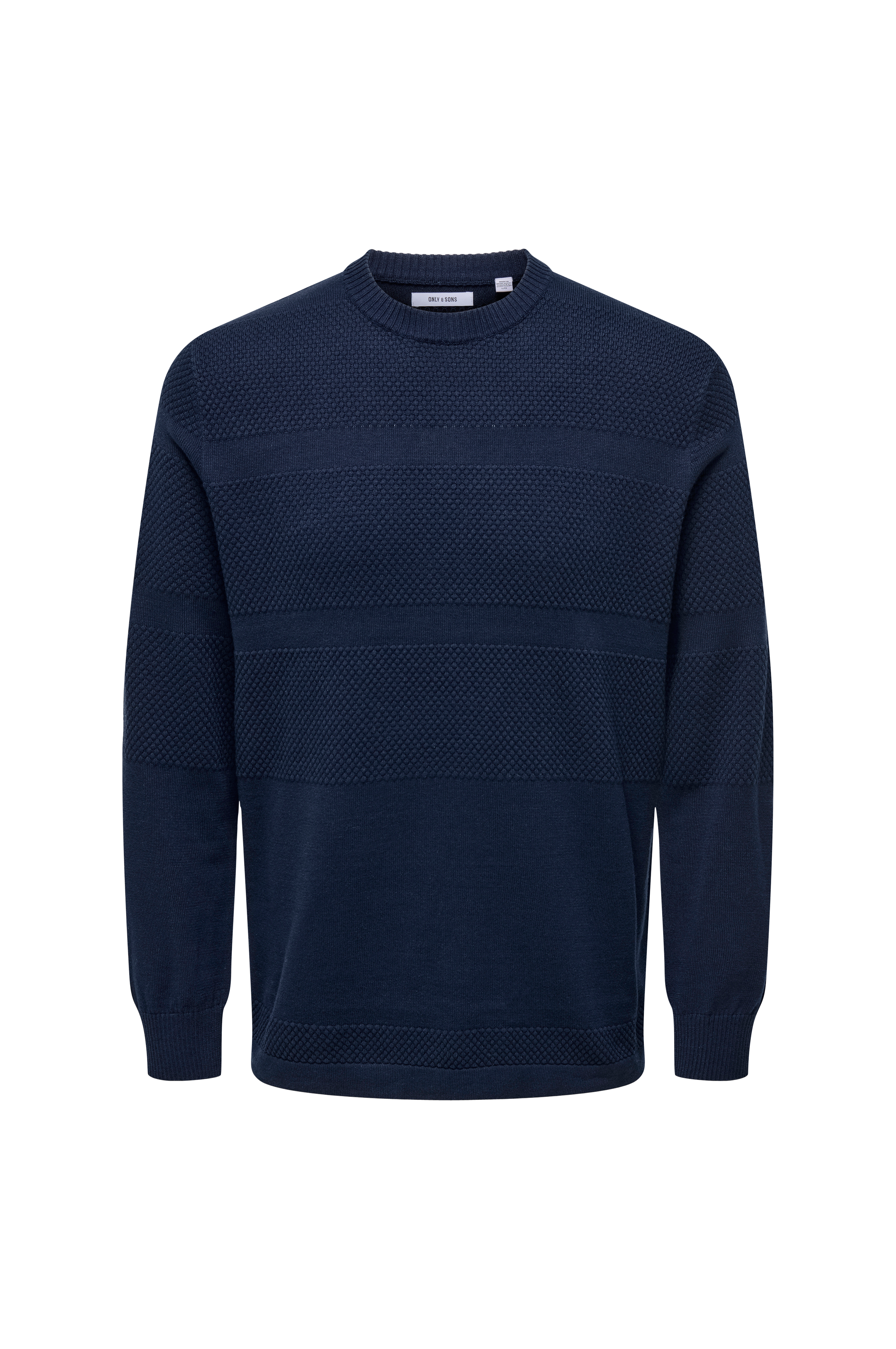 • Fintstrikket, blød trøje• Strukturstrikkede detaljer• Rund, ribstrikket halsudskæring• Ribstrik ved manchetterne og ved nederste kant