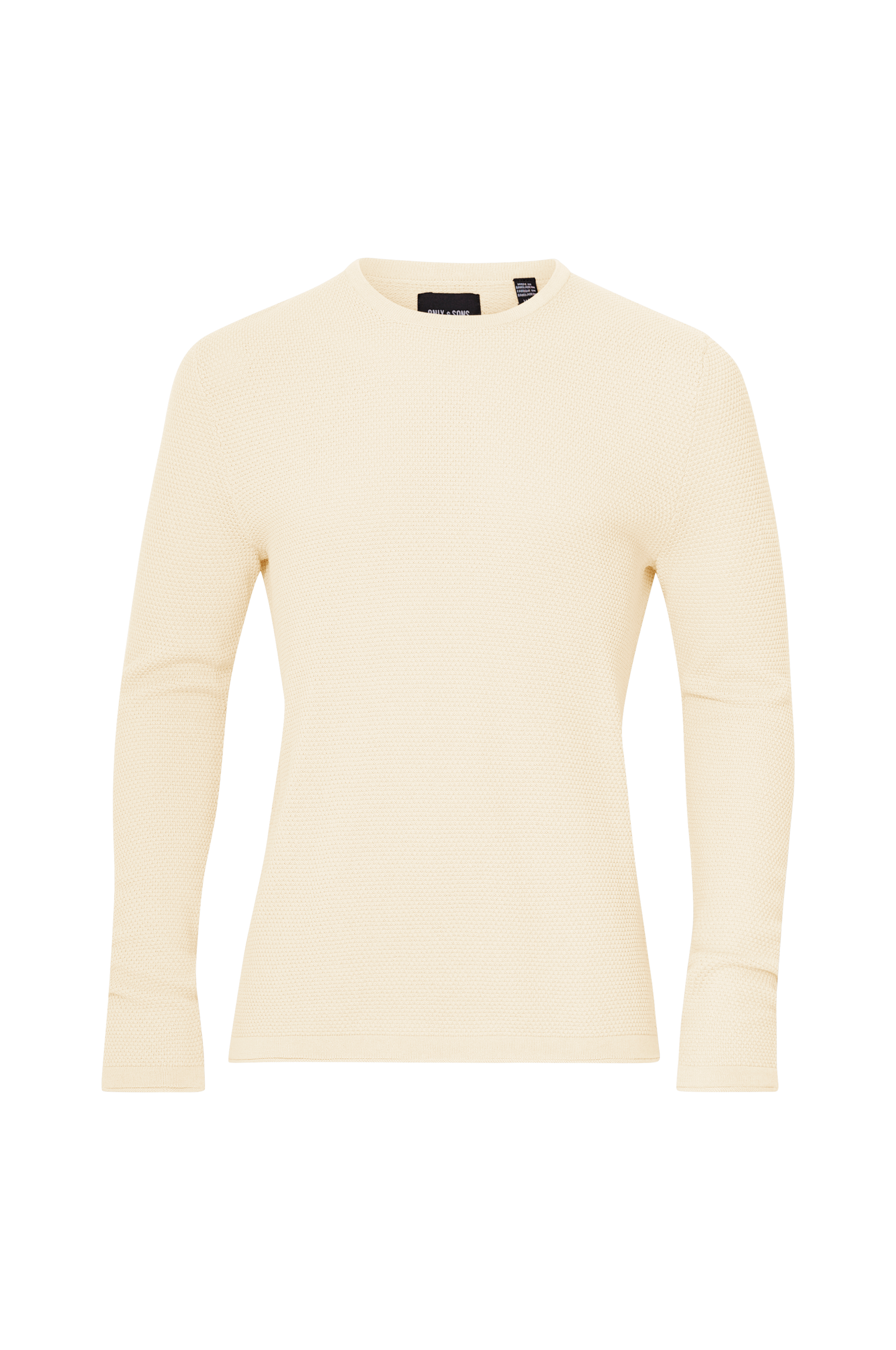 Strukturstrikket trøje i bomuld med rund halsudskæring i rib. Rullede ribkanter i ærmerne og forneden.