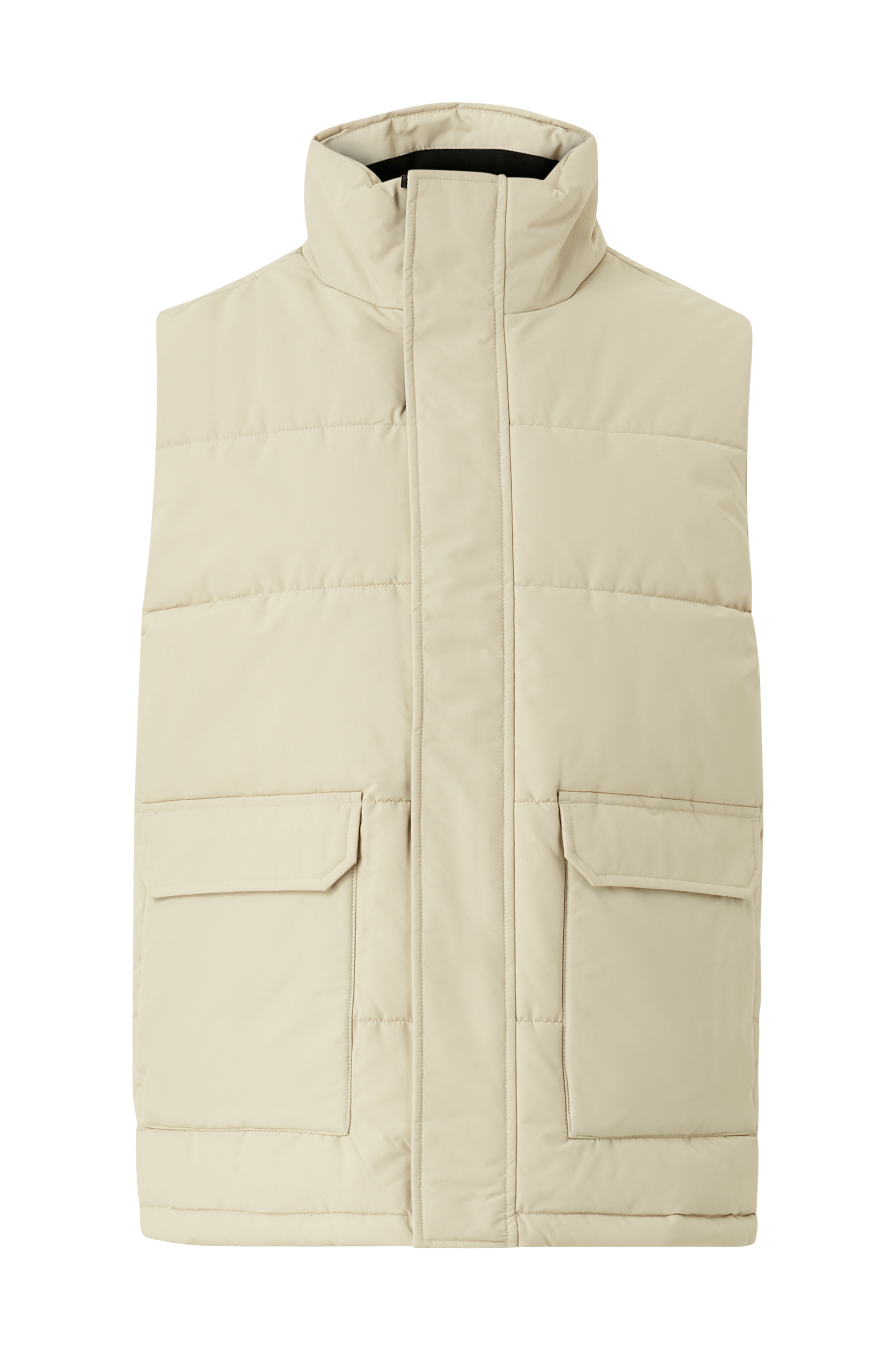 • Quiltet, foret vest• Høj krave• Lynlås• Vindflap over lynlåsen med velcrolukning• To lommer med knapbare låg og trikotfor• Inderlomme med lynlås• Træksnørre ved nederste kant• Længde: 72 cm i størrelse M