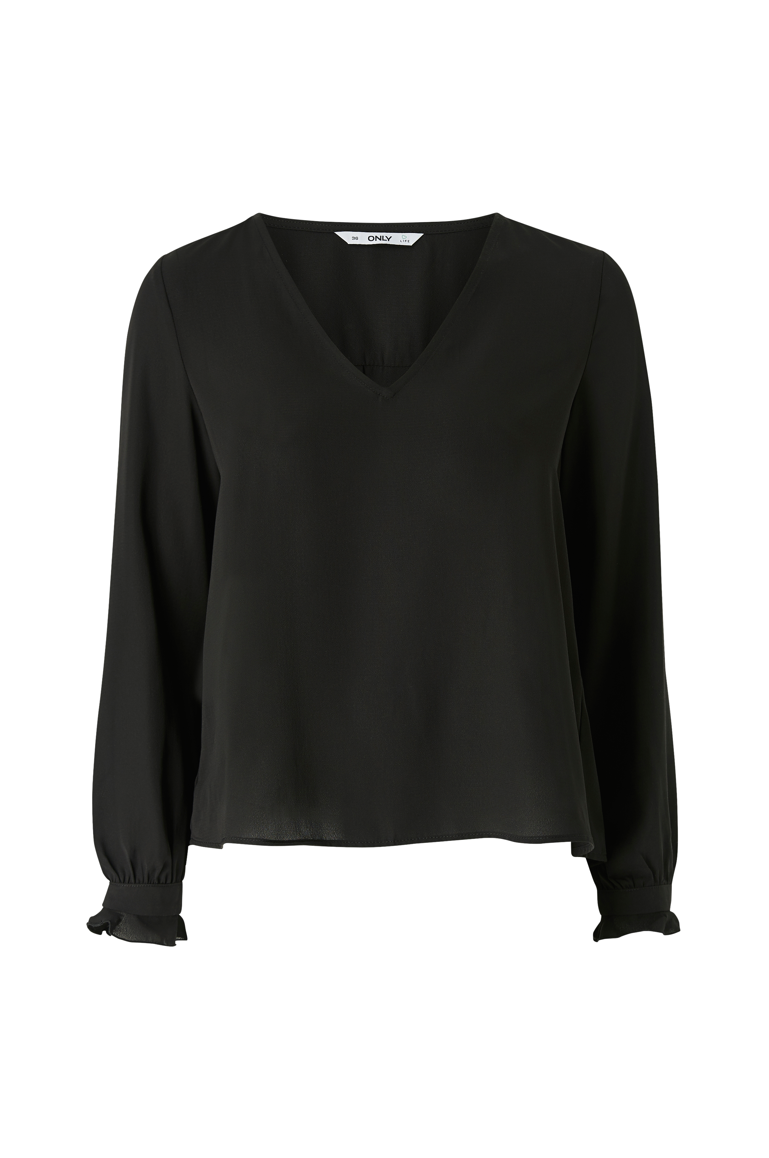 Bluse onlAdie Life L/S V-neck Top fra Only med v-udskæring foran og lagte læg i ryggen som giver effektfuld plissering med fint fald. Langt ærme med smal manchet med knap og flæse i ærmekanten. I tynd kvalitet.
