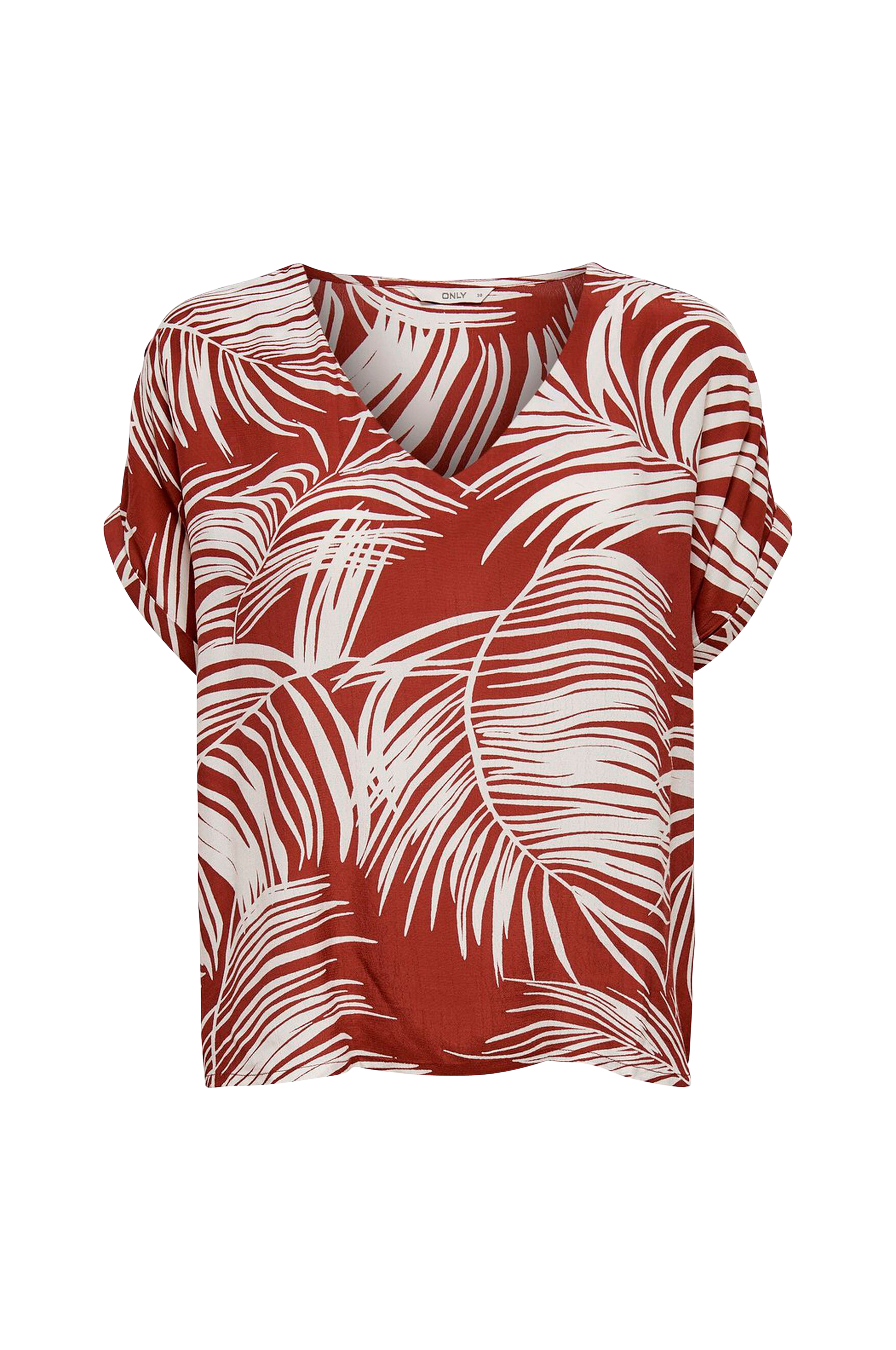Bluse onlAugustina S/S Top Wvn fra Only i firkantet, løs model med V-udskæring og korte ærmer med opslag. I vævet kvalitet med glans.