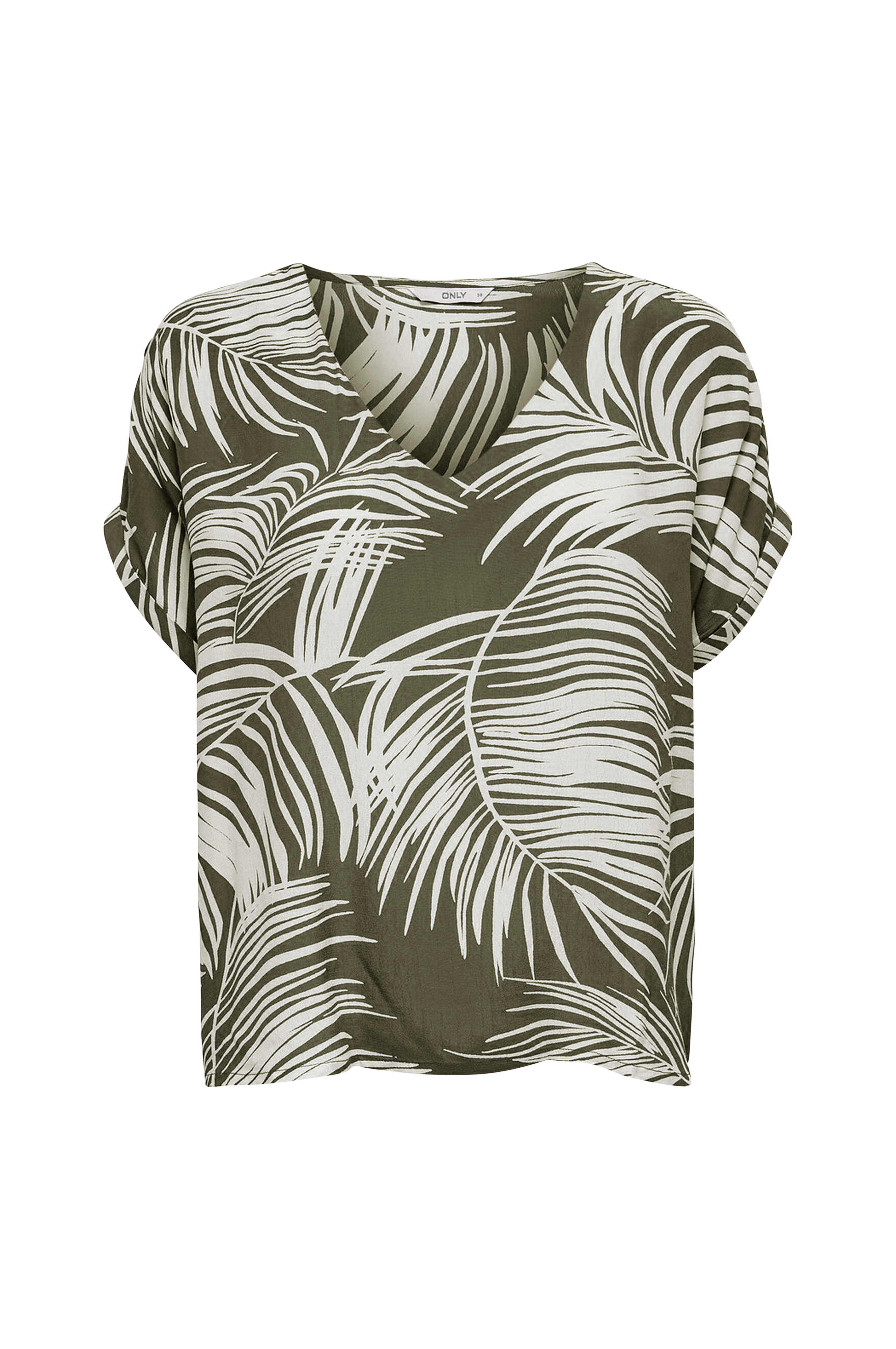 Bluse onlAugustina S/S Top Wvn fra Only i firkantet, løs model med V-udskæring og korte ærmer med opslag. I vævet kvalitet med glans.