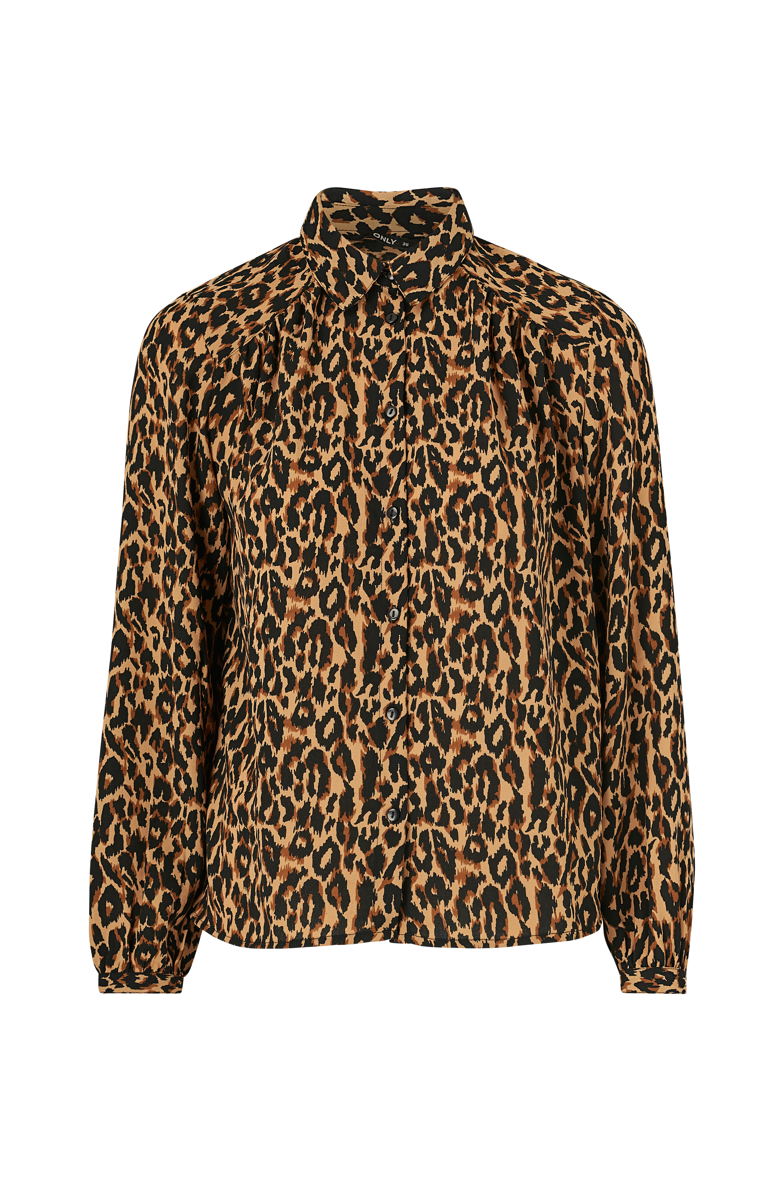 Bluse onlDemi L/S Shirt fra Only. Lige model med lille skjortekrave og afskåret skulderbærestykke med rynkning både foran og bagpå. Lukning hele vejen foran og langt, vidt ærme med smal manchet i ærmekant. Vævet crepekvalitet med printet mønster.
