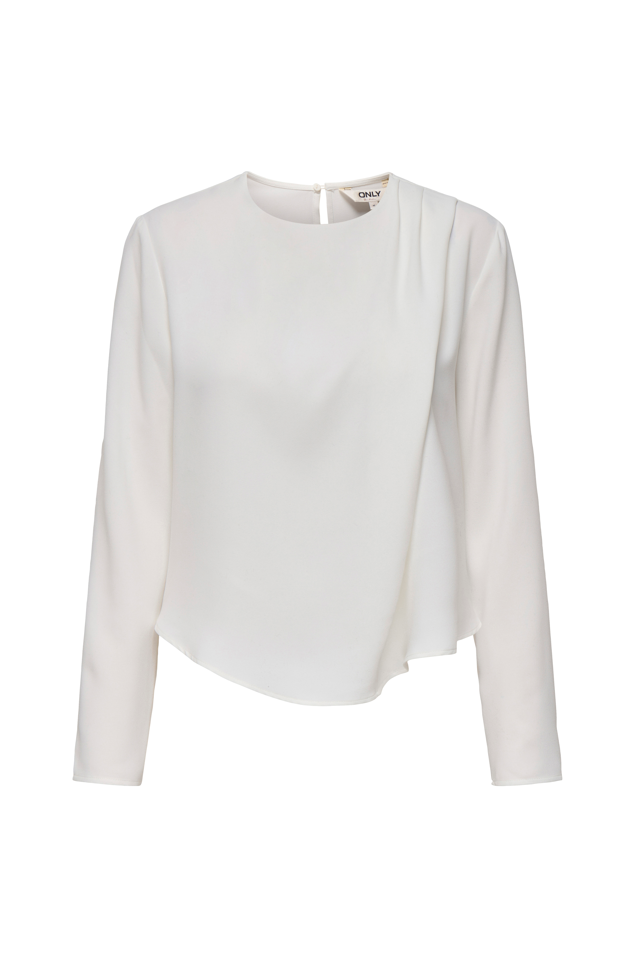 • Langærmet bluse med bølget søm• Bølgeformet design foran med plissering ved skulderen• Afrundet halsudskæring med lukning med knap i nakken• Skjult lynlås nederst på siden