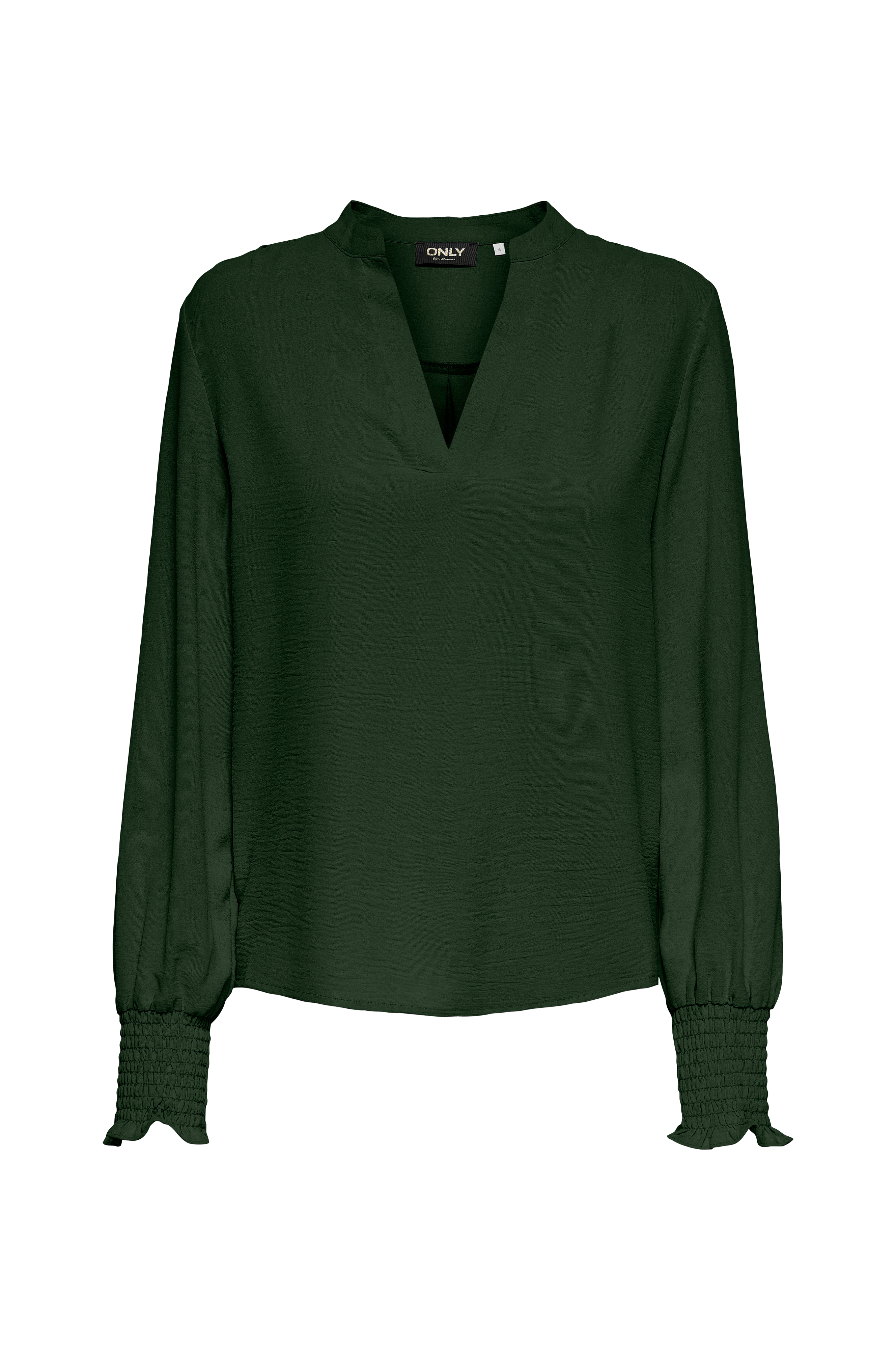 • Elastisk, blødt stof med let struktur• V-formet halsudskæring• Lange ærmer med smock ved manchetterne