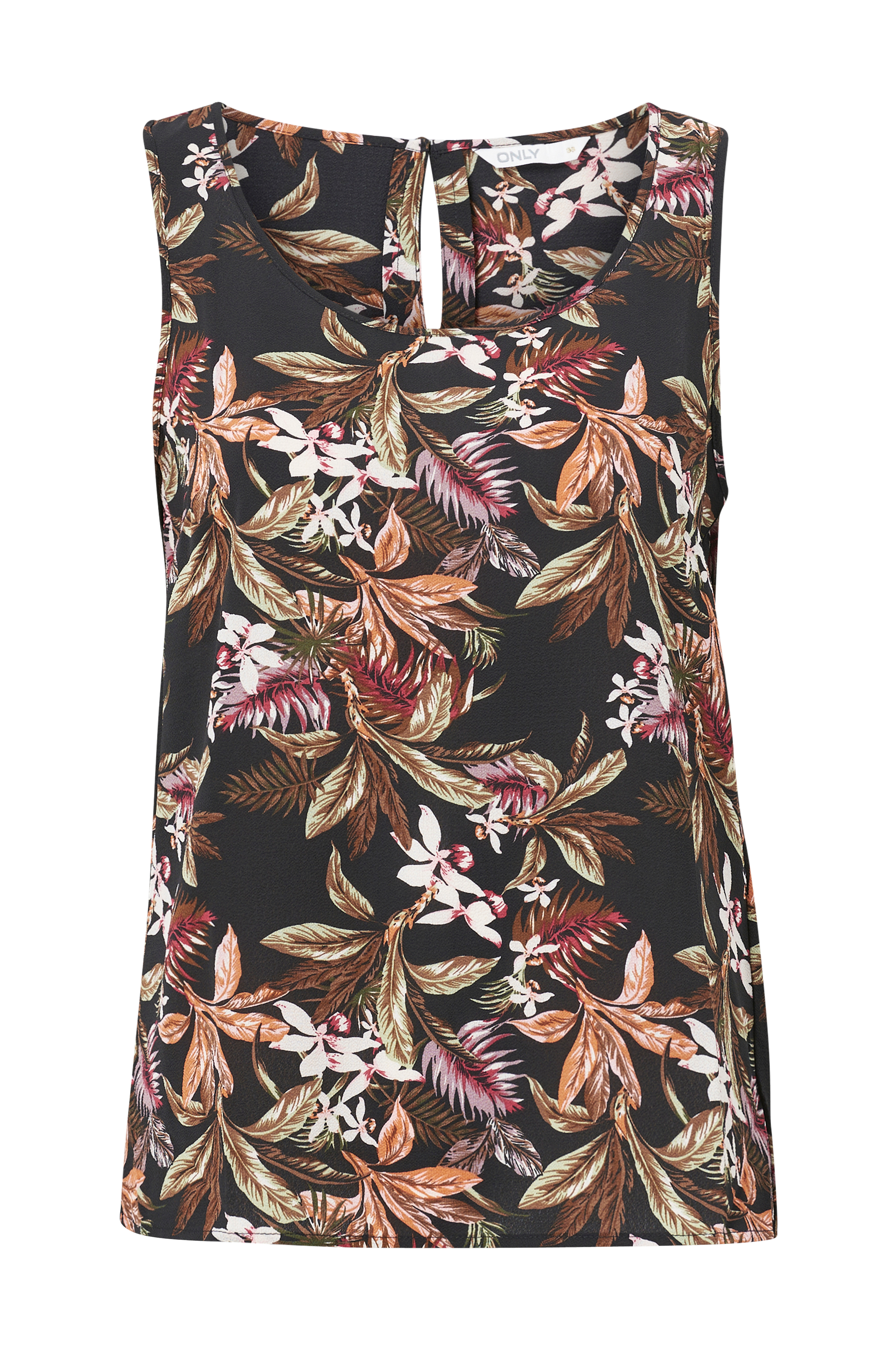 Ærmeløs bluse i vævet, crepet kvalitet. Rund hals med slids og knap i nakken.